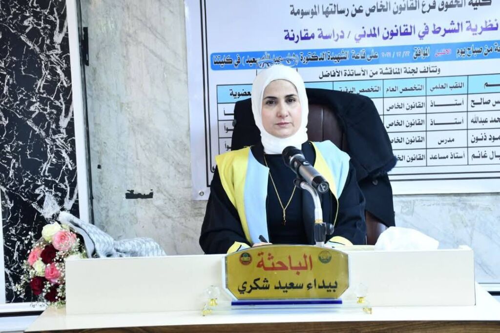 نظرا للجهود المتميزة المبذولة من قبل الدكتور ذنون يونس صالح/ كلية القانون بجامعة تكريت في دعم الانشطة العلمية والثقافية والطلابية في كليتنا ومشاركته في مناقشة طالبة الماجستير في فرع القانون الخاص بيداء سعيد شكري ، فقد تم تكريمه بشهادة تقديرية من قبل الاستاذ المساعد الدكتور وسام نعمت ابراهيم السعدي عميد الكلية ، وبدورها تهنئ عمادة الكلية والسادة اعضاء مجلس الكلية وكادريها العلمي والاداري وطلبتها الدكتور ذنون يونس صالح متمنين له المزيد من العطاء العملي والابداع الاكاديمي خدمة لمسيرة العلم والمعرفة في كليتنا العزيزة جامعتنا العريقة وعراقنا الآبي .