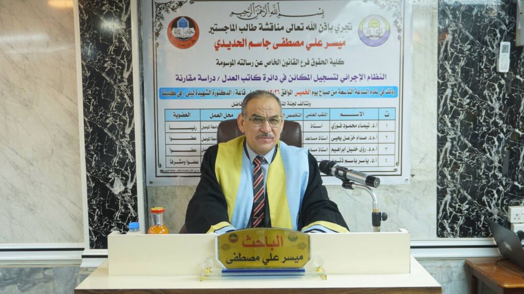 استقبل الاستاذ المساعد الدكتور وسام نعمت ابراهيم السعدي عميد كلية الحقوق بجامعة الموصل بحضور عددا من اعضاء مجلس الكلية الدكتور سعدون الشمري رئيس اللجنة القانونية في مجلس محافظة نينوى وجرى بحث سبل التعاون المشترك بين كليتنا ومجلس محافظة نينوى بما في ذلك إقامة الانشطة والفعاليات العلمية والبحثية والثقافية المشتركة علاوة على تقديم الاستشارات القانونية ومساهمة تدريسيي كليتنا في تقديم الدراسات العلمية والبحوث التخصصية التي من شأنها وضع حلولا ومعالجات لكل ما يطرأ من ظواهر وحالات حديثة ومستحدثة بفعل التقدم العلمي والتطور والمجتمعي وما يصاحبهم من اوضاع تتطلب حلولا ومعالجات تساهم في تحقيق الاستقرار الفردي والاسري والمجتمعي ، وتأتي هذه الزيارة ضمن سعي عمادة كليتنا في التواصل مع دوائر ومؤسسات الدولة وتسخير العلوم القانونية في خدمة التطور المعرفي والاستقرار المجتمعي في رحاب الموصل الحدباء وعراق الحضارات .