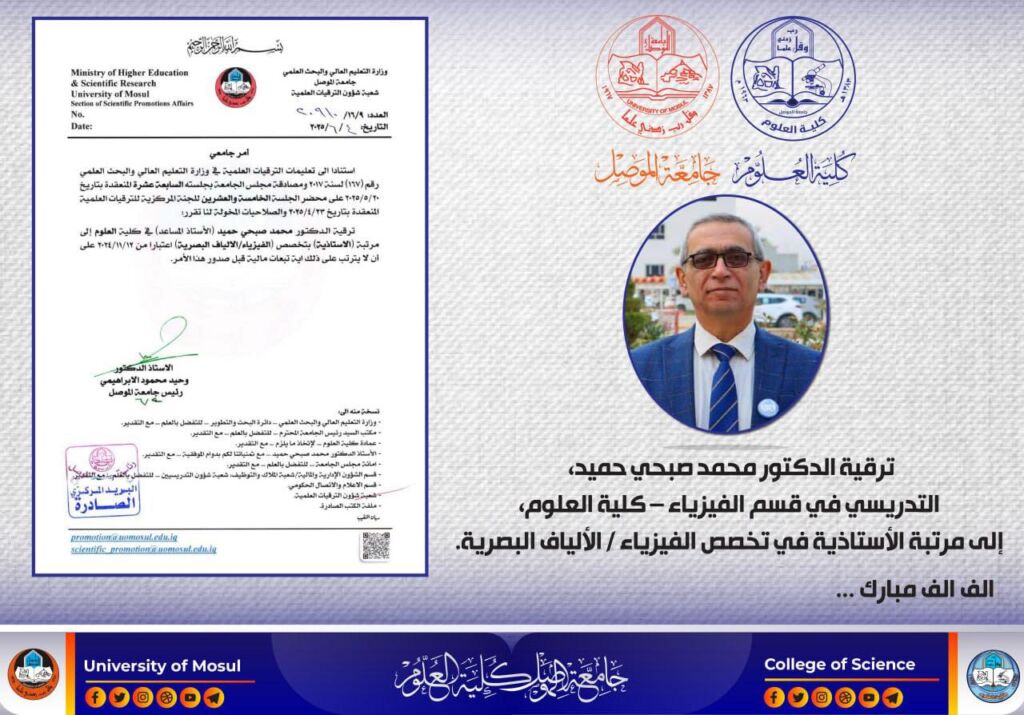 نوقشت في قسم علوم الحياة بكلية العلوم – جامعة الموصل، يوم الثلاثاء الموافق 3 حزيران 2025، أطروحة الدكتوراه الموسومة: