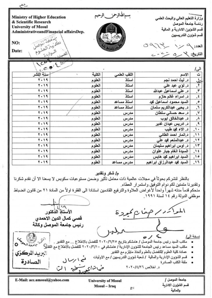 براءة موضوعها يحاكي قاتل صامت بعلاج جديد و واعد هو جزء من كائن مجهري …هو أحد أنواع السموم التي تفرزها بكتريا تم عزلها محلياً ..إنجاز جديد يضاف الى كلية العلوم و براءة إختراع جديدة تسجل في قسم علوم الحياة حازت عليها كل من الأستاذ الدكتورة أميرة محمود الراوي و الدكتورة آلاء حسين طهعنوانها ” إستخدام الذيفان المعوي CPE المستخلص محلياً من عزلات جرثومة Clostridium perfringens في علاج سرطان الثدي “