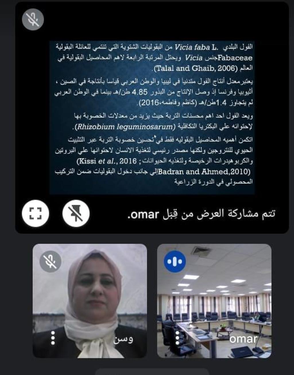 تدريسية من كليتنا تشارك في مناقشة رسالة ماجستير في كلية الزراعة / جامعة عمر المختار /ليبيا