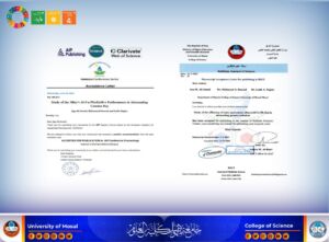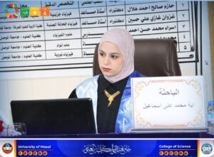 نوقشت في قسم الفيزياء بكلية العلوم/جامعة الموصل، يوم الإثنين الموافق 25 آب 2025، رسالة الماجستير الموسومة “تصنيع سبائك رباعية (Al67Cu23PbxZn10-x) ودراسة كفاءتها في توهين أشعة كاما”، للطالبة آية محمد علي، بحضور عدد من تدريسي الكلية وطلبة الدراسات العليا.