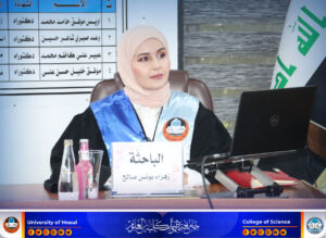 ناقش قسم علوم الحياة في كلية العلوم بجامعة الموصل يوم الأحد الموافق 17 آب 2025، رسالة الماجستير الموسومة “الأسباب الوراثية لتشوهات الأعضاء التناسلية لدى بعض الأطفال في مدينة الموصل”، والتي تقدمت بها الطالبة زهراء يونس صالح من فرع علم الحيوان، بحضور السيد رئيس القسم وعددٍ من تدريسيي الكلية.