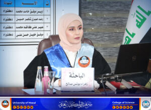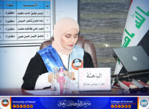 تألفت لجنة المناقشة من الأستاذ الدكتور أويس موفق حامد رئيسًا، وعضوية كل من الأستاذ المساعد الدكتور وعد صبري شاهر، والمدرس الدكتورة عبير علي كاظم، وبإشراف وعضوية المدرس الدكتور موفق خليل حسن.