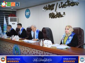 ترأس لجنة المناقشة الأستاذ المتمرس الدكتور محمود يونس محمد طه، وعضوية كل من الأستاذ المساعد الدكتور علاء يونس مهدي صالح، والأستاذ المساعد حنان سامي نوري، وبإشراف وعضوية الأستاذ المساعد الدكتور أنمار أحمد داود سليمان.