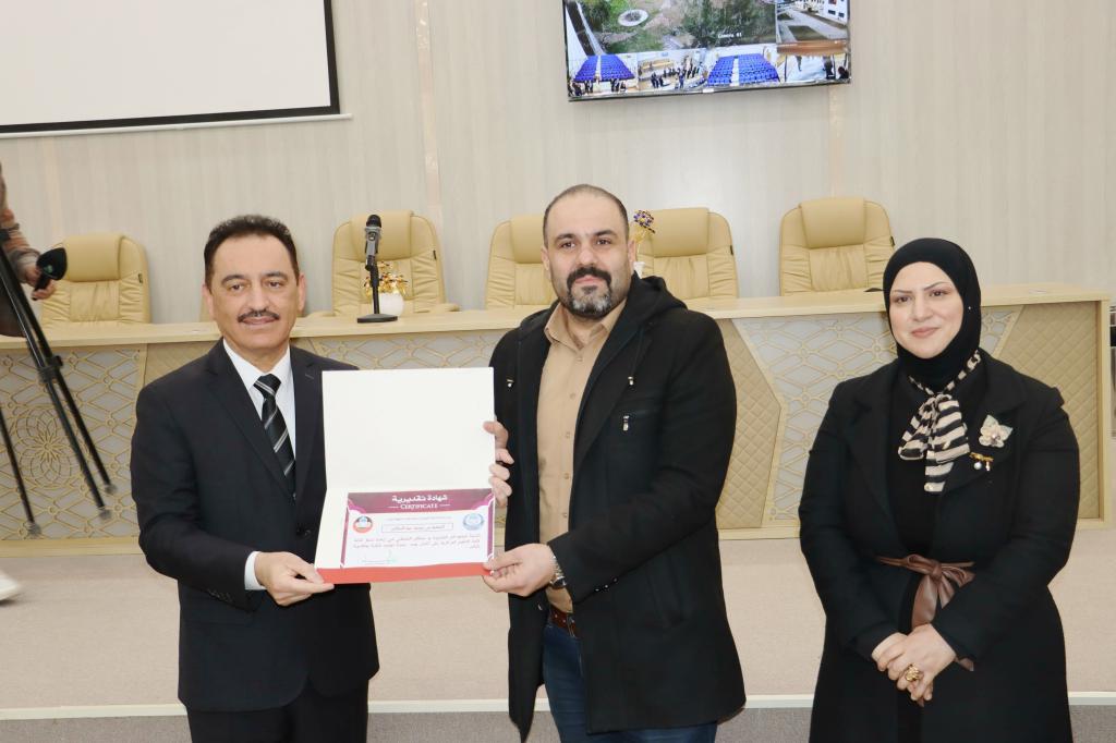 في صباح مميز من صباحات جامعة الموصل الغراء ، وفي رحاب كلية عريقة من كليات الجامعة يستمر فيها نهر العطاء العلمي بالمضي قُدماً لمواكبة التطورات العلمية والبحثية.كلية العلوم تفتتح القاعة المركزية الكبرى ( قاعة الأستاذ الدكتور فارق العمري )ففي ساعات الصباح الأولى ليوم الأربعاء الموافق 4 كانون الثاني 2023 تشرفت كلية العلوم بزيارة كريمة للسيد رئيس جامعة الموصل الأستاذ الدكتور قصي كمال الدين الأحمدي المحترم لافتتاحه قاعة كلية العلوم المركزية بحضور السيدة عميد الكلية الأستاذ الدكتورة هيام عادل إبراهيم والسادة أعضاء مجلس الكلية والسيد عميد كلية الطب الأستاذ الدكتور باسل محمد نذير وعائلة الأستاذ الدكتور فاروق العمري .هذا وقد أشاد السيد رئيس الجامعة بالمتابعة الحثيثة للسيدة عميد الكلية والجهود الجبارة المستمرة من شعبة الإعمار والمشاريع في رئاسة الجامعة ممثلةً بالمهندس أسامة أحمد حمدون في عملية إعادة إعمار وتأهيل مباني الجامعة .و أوضحت السيدة العميد أن الطاقة الاستيعابية للقاعة بقرابة 300 مقعد ، مثنيةً على تظافر كل الجهود التي أسهمت في إعادة تأهيلها .شعبة الإعلام والعلاقات العامةالأربعاء 4 كانون الثاني 2023