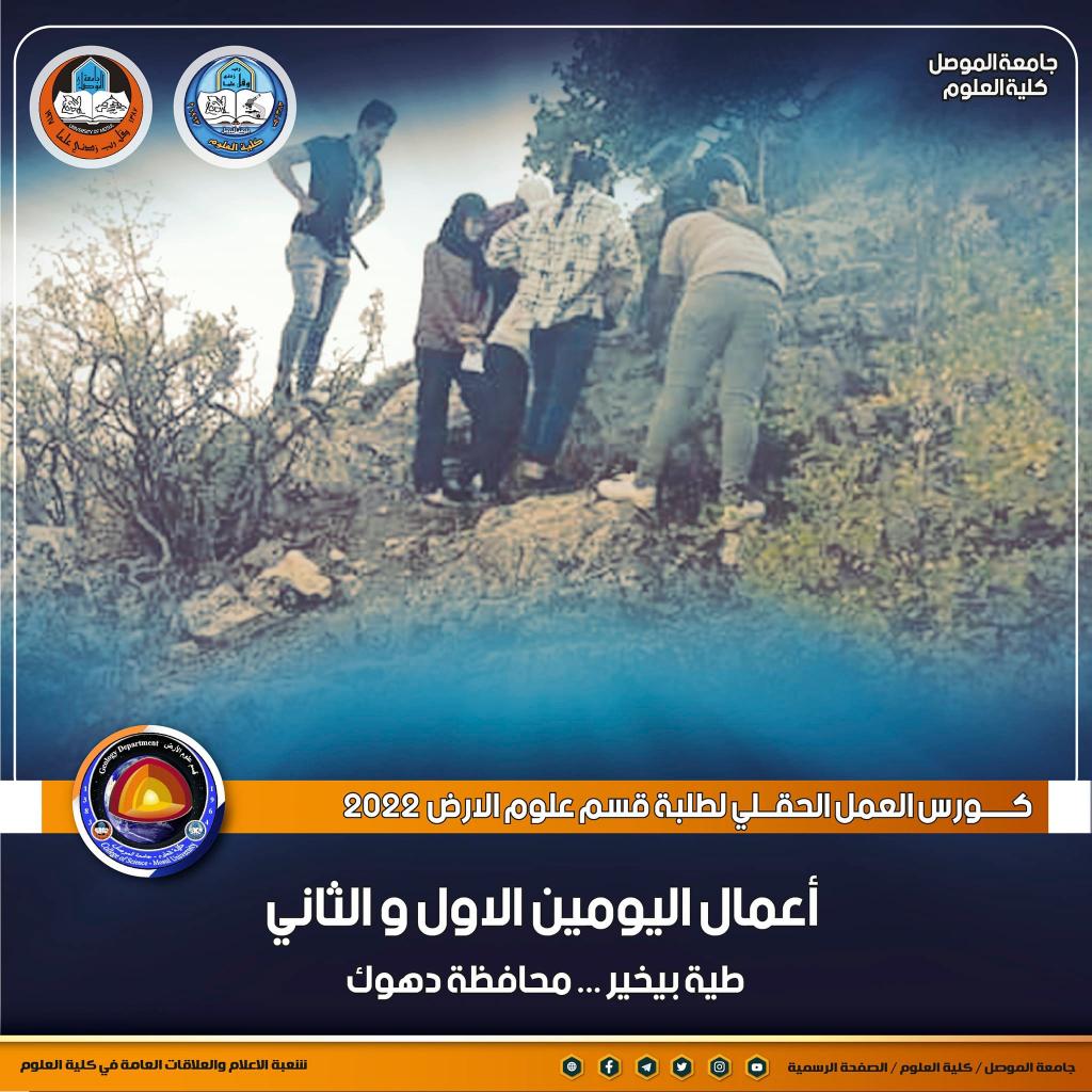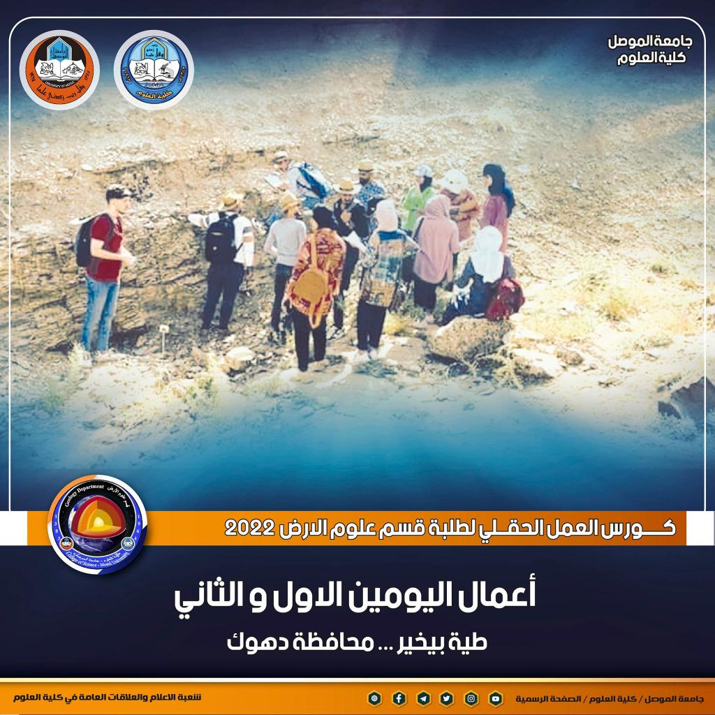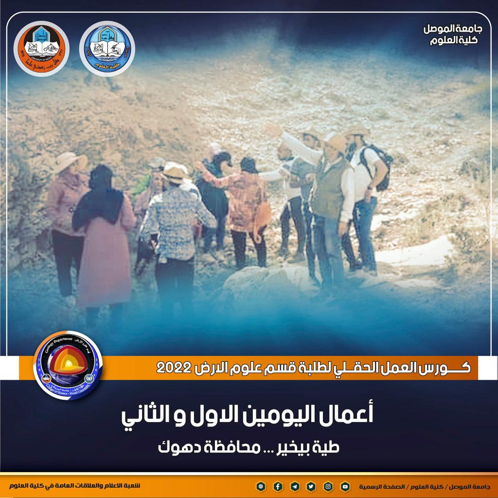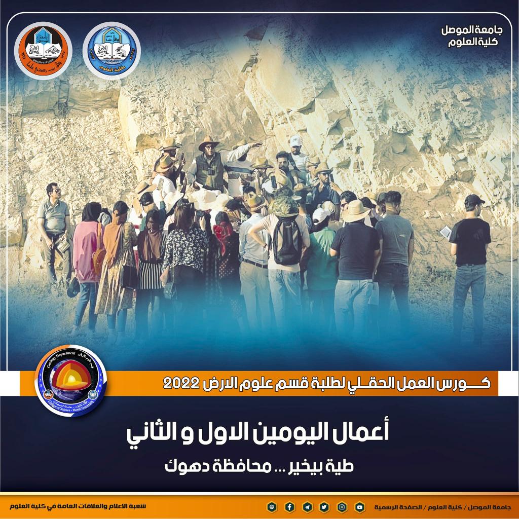 بدعم من لدن السيد رئيس جامعة الموصل الأستاذ الدكتور قصي كمال الدين الأحمدي و بإشراف ودعم مباشر من قبل السيدة عميدة كلية العلوم الأستاذ الدكتورة هيام عادل إبراهيم ، بدأ كورس العمل الحقلي لطلبة المرحلة الرابعة في قسم علوم الأرض بكليتنا ، حيث انطلقت أعمال اليوم الأول بتاريخ 21 حزيران 2022 وتضمنت اجراء جولة استطلاعية لطيّة بيخير في محافظة دهوك وتوزيع الطلاب على مجاميع ومسارات ، بالإضافة الى شرح وتدريب الطلبة على اسلوب العمل الحقلي ، وكيفية مسح المنطقة جيولوجيا ووصف الطبقات والتكاوين .أما أعمال اليوم الثاني فكانت بتاريخ اليوم 22 حزيران 2022 واختصت بتدريب الطلاب على تحديد الموقع على الخارطة واستخدام البوصلة ووصف الطبقات والتعاقبات الرسوبية ووصف المظاهر التركيبية مثل الفواصل وأنواعها والكسور.يشرف على كورس العمل الحقلي للطلبة عدد من تدريسي القسم و هو كل من :د. فلاح عبد المعماري ، د. محفوظ عبدالله ، د. محمود عبدالحق الصميدعي ، د. صدام عيسىد. رضوان الأتروشي ، السيد عزت إبراهيم الفندي ، السيدة آلاء محمود الوزان .تمنياتنا لطلبتنا الأعزاء بالتوفيقشعبة الإعلام والعلاقات العامةالأربعاء 22 حزيران 2022