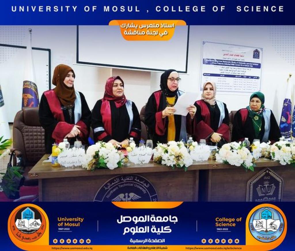 ترأست الأستاذ المتمرس الدكتورة باسمة أحمد عبد الله التدريسية بقسم علوم الحياة في كليتنا لجنة مناقشة رسالة ماجستير الطالبة ( دنيا عصام صدر الدين ) من الجامعة التقنية الشمالية / الكلية التقنية – كركوك و الموسومة ” دراسة بكتريولوجية وجزيئية لبكتريا الكليبسيلا المعزولة من الأشخاص المصابين بالكوفيد -19 في مدينة كركوك ” .جرت أحداث المناقشة صباح يوم الخميس الموافق 17 تشرين الثاني 2022.شعبة الإعلام والعلاقات العامةالسبت 19 تشرين الثاني 2022