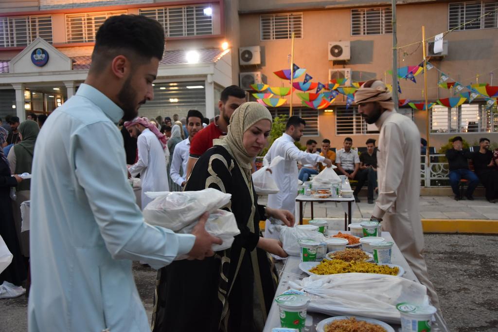 في مساءٍ رمضانيٍ مفعمٍ بروح الأسرة الواحدة المتماسكة ، و استناداً الى توجيهات السيد رئيس جامعة الموصل الأستاذ الدكتور قصي كمال الدين الأحمدي ، و اشراف و متابعة السيدة عميد كلية العلوم الأستاذ الدكتورة هيام عادل إبراهيم ، أقامت أسرة كلية العلوم ممثلة بوحدة الإرشاد و اللجان التابعة لها في أقسام الكلية وشعبة الشؤون الإدارية اضافة الى تعاون كبير لعدد من تدريسي وطلبة الكلية ” مأدبة افطار جماعي ” لمنتسبيها وطلبتها احتضنت فيها أبنائها و بناتها من طلبة الأقسام الداخلية وسط أجواء رمضانية روحانية و عائلية أتسمت بالألفة و المحبة والتعاون المثمر البناء بين أفراد الأسرة الواحدة وذلك مساء يوم الإثنين الموافق للسابع عشر من شهر رمضان المبارك 1443/ 2022.حضر المأدبة السادة أعضاء مجلس الكلية و عدد من تدريسي و طلبة وطالبات الكلية ، تبعها اقامة أمسية رمضانية عائلية بفقرات متنوعة بمشاركة السيدة العميد .رمضان مبارك