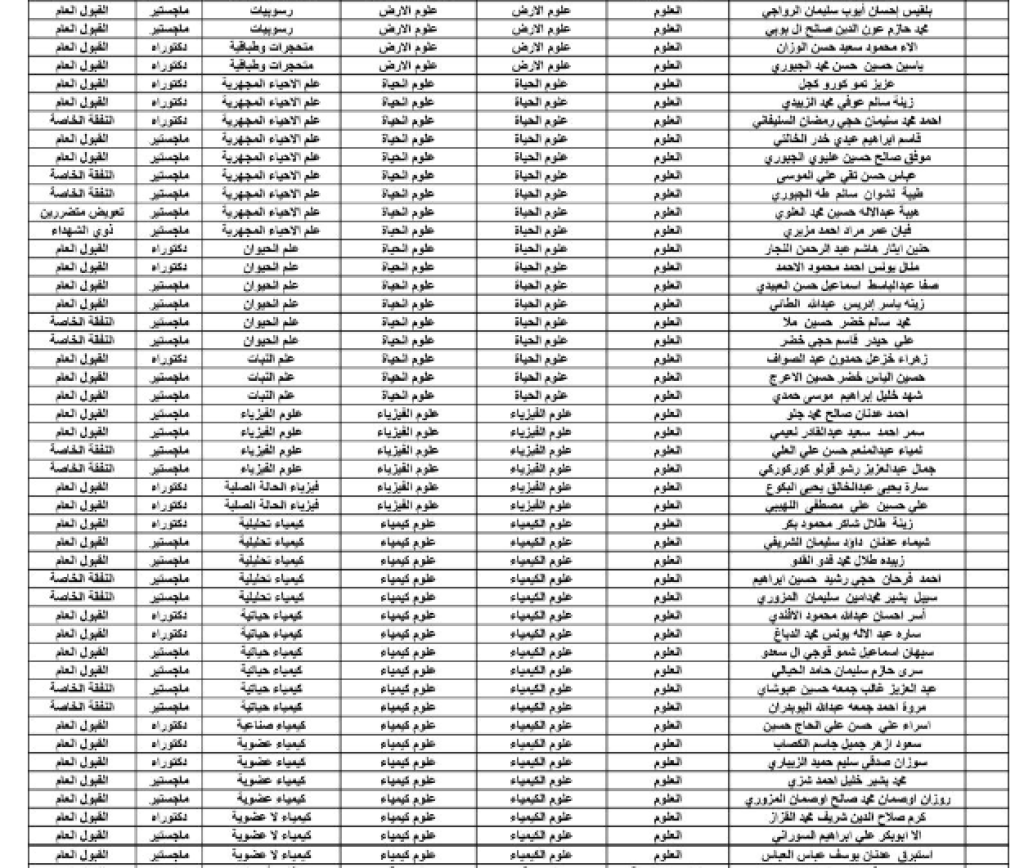 أسماء الطلبة المرشحين للقبول بالتوسعة المؤجلة للدراسات العليا