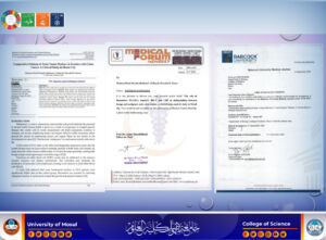 ناقش قسم علوم الحياة في كلية العلوم بجامعة الموصل، يوم الخميس الموافق 11 أيلول 2025، أطروحة الدكتوراه للطالبة شيماء عبيد مصطفى من فرع علم الحيوان، الموسومة ” التغيرات الوراثية والكيموحيوية لدى المرضى المصابين بسرطان القولون في محافظة نينوى ” حضر جانبًا من المناقشة السيدة عميد كلية العلوم الأستاذ الدكتورة هيام عادل إبراهيم المحترمة برفقة السيد المعاون العلمي الاستاذ الدكتور ريان مازن فيصل المحترم إضافةً إلى رئيس القسم الاستاذ الدكتور امجد عبدالهادي المحترم وعدد من تدريسي الكلية وطلبة الدراسات العليا.