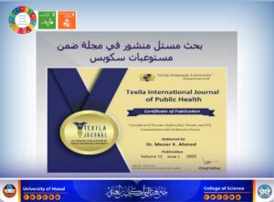 ناقش قسم علوم الحياة في كلية العلوم بجامعة الموصل، يوم الأربعاء الموافق 3 أيلول 2025، أطروحة الدكتوراه الموسومة: