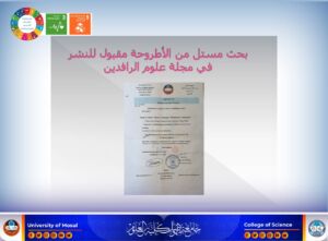 ناقش قسم علوم الحياة في كلية العلوم بجامعة الموصل، يوم الأربعاء الموافق 3 أيلول 2025، أطروحة الدكتوراه الموسومة: