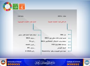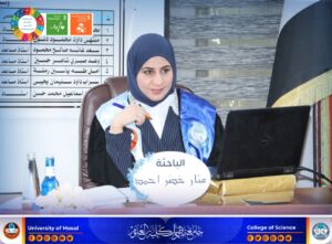 “Evaluation Biochemical and Molecular of Parkinson’s Disease patients in Mosul City”، للطالبة منار خضر أحمد علي من فرع علم الحيوان، بحضور رئيس القسم وعدد من تدريسيي الكلية.