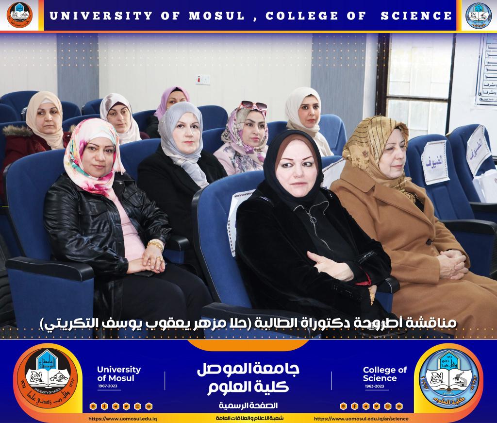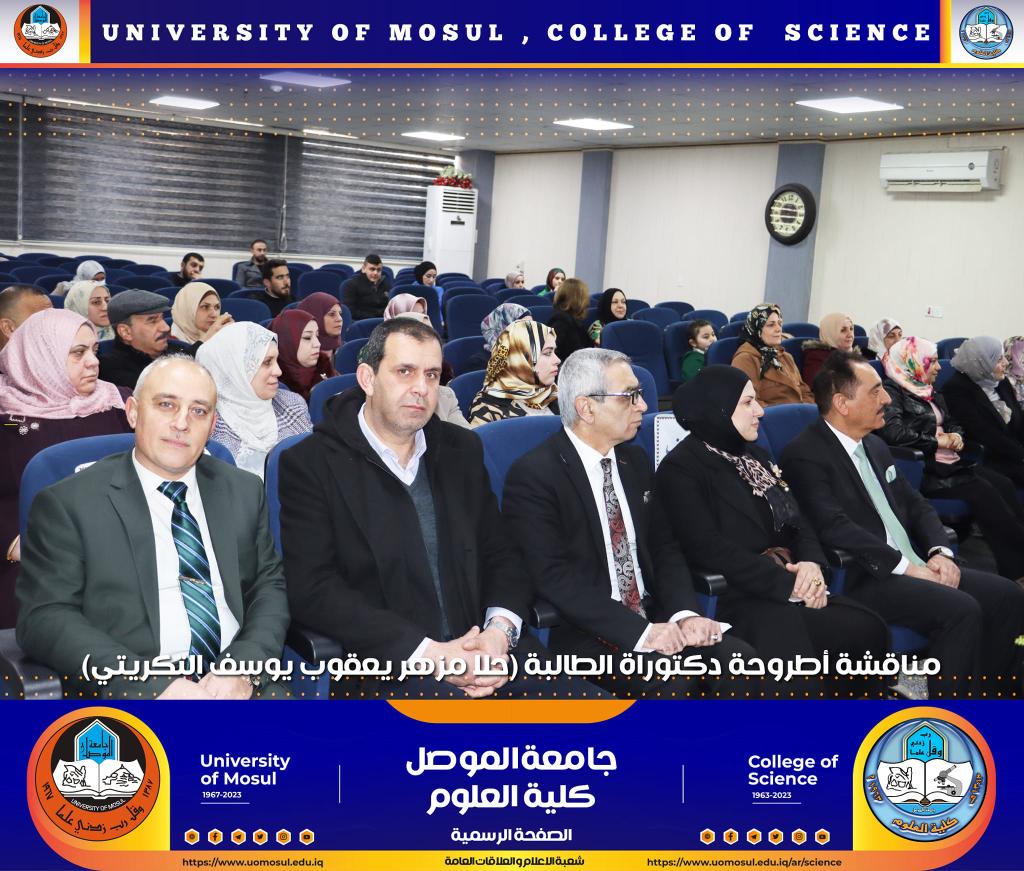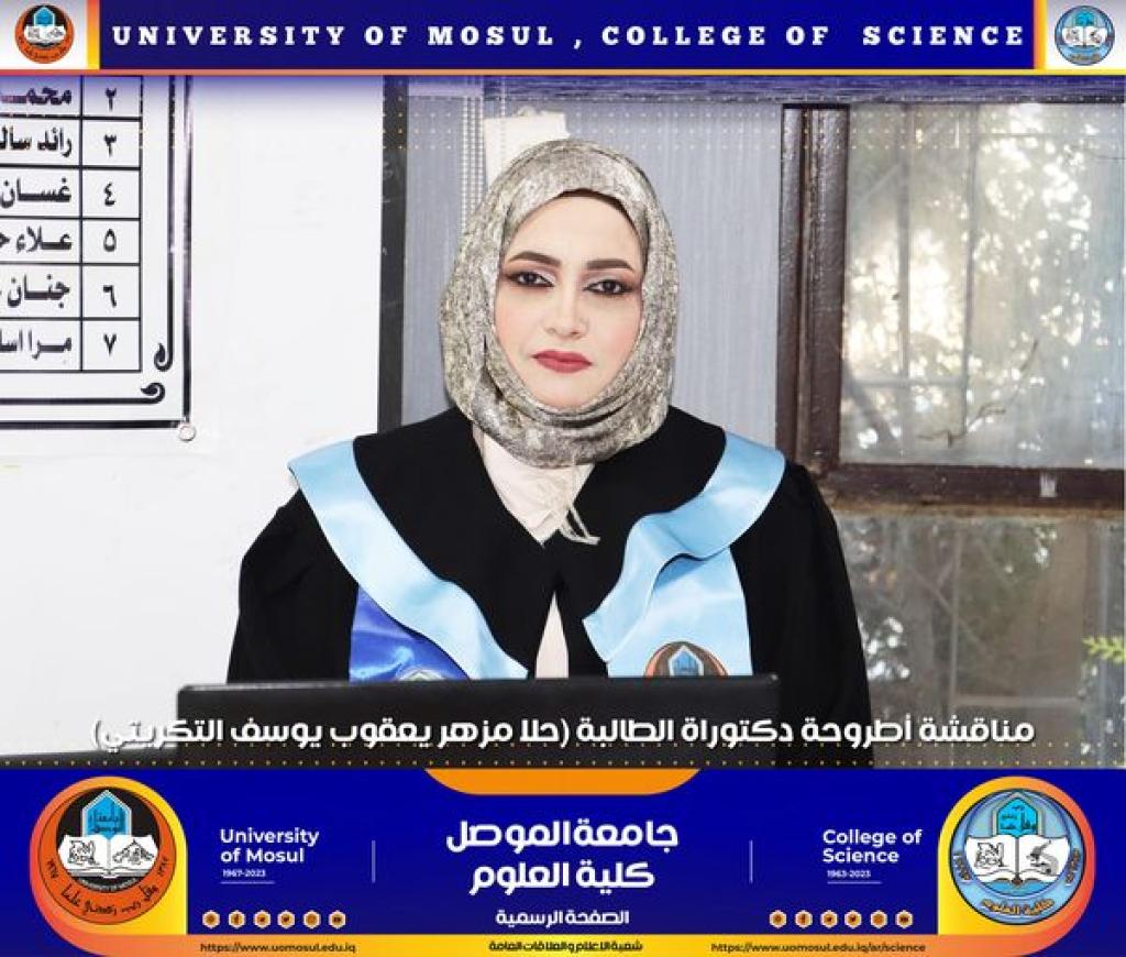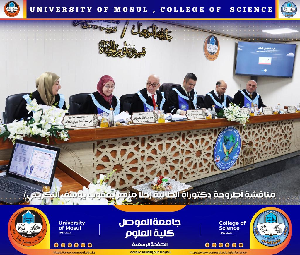 ناقش قسم علوم الحياة في كلية العلوم بجامعة الموصل أطروحة دكتوراه بعنوان “الفعالية الاليلوباثية لنوعين من الطحالب الخضراء وتأثيرها في بعض صفات النمو لثلاثة أصناف من الحنطة” يوم الأربعاء الموافق 11 كانون الثاني 2023.حضر جانباً منها السيد رئيس جامعة الموصل الأستاذ الدكتور قصي كمال الدين الأحمدي و السيدة عميد الكلية الأستاذ الدكتورة هيام عادل إبراهيم والسيد عميد كلية التربية للعلوم الصرفة الاستاذ المساعد الدكتور قيس إسماعيل إبراهيم والسادة معاوني العميد للشؤون العلمية و الإدارية وعدد من تدريسي الكلية.تناولت الدراسة التي تقدمت بها الطالبة (حلا مزهر يعقوب يوسف التكريتي) من فرع النبات عدد من المحاور منها : عزل وتحديد جنسين من الطحالب الخضراء الخيطية و تشخيصهما مظهرياً وجزيئياً وهما اﻟ glomerata Cladophora و maxima Spirogyra ، فصل وتشخيص المركبات الكيميائية الفعالة لكل من الطحلبين باستعمال تقانة كروماتوغرافيا الغاز- مطياف الكتلة(GC-MS) وكذلك تقانة الكروماتوغرافيا عالية الاداء (HPLC) ، و التحري عن امكانية تحويل مسحوق الطحلبين بأحجامهما المايكروية الى احجامهما النانوية باستعمال الطريقة الميكانيكيةتوصلت نتائج الدراسة الحالية إلى امكانية استعمال مستخلصات الطحلبين في الزراعة المستدامة لزيادة انتاجية محصول الحنطة فضلاً عن قدرتها على انتاج دقائق أكاسيد المعادن النانوية وكان افضلها تأثيراً في نمو أصناف الحنطة الناعمة طحلب glomerata Cladophora وعند التركيز 2% وكذلك دقائق اوكسيد المغنيسيوم النانوي عند التركيز 200 جزء بالمليون .ترأس لجنة المناقشة الأستاذ الدكتور أحمد ساهي درويش من الجامعة المستنصرية وعضوية كل من الأستاذ الدكتور محمد سعيد فيصل والأستاذ المساعد الدكتور رائد سالم أحمد داؤود والأستاذ المساعد الدكتور غسان فارس عطية علوان من جامعة سامراء و الأستاذ المساعد الدكتور علاء حسين علي شلال وبإشراف كل من الأستاذ الدكتورة جنان عبد الخالق سعيد والأستاذ المساعد الدكتورة مرا أسامة أحمد سليمان.شعبة الإعلام والعلاقات العامةالأربعاء 11 كانون الثاني 2023