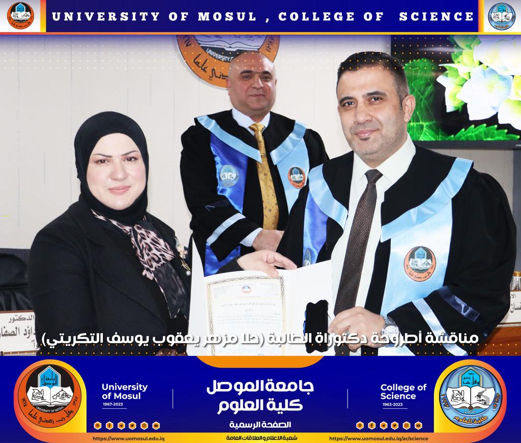 تدريسي من كليتنا يشارك بعضوية لجنة مناقشة رسالة ماجستير في كلية العلوم / جامعة تكريت