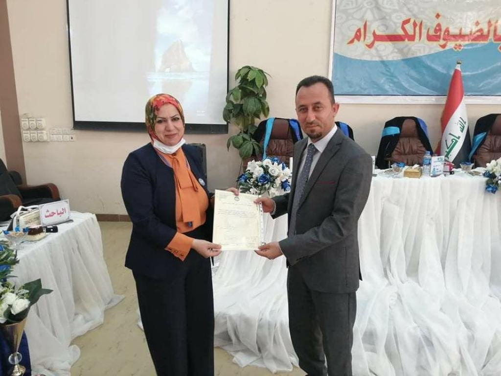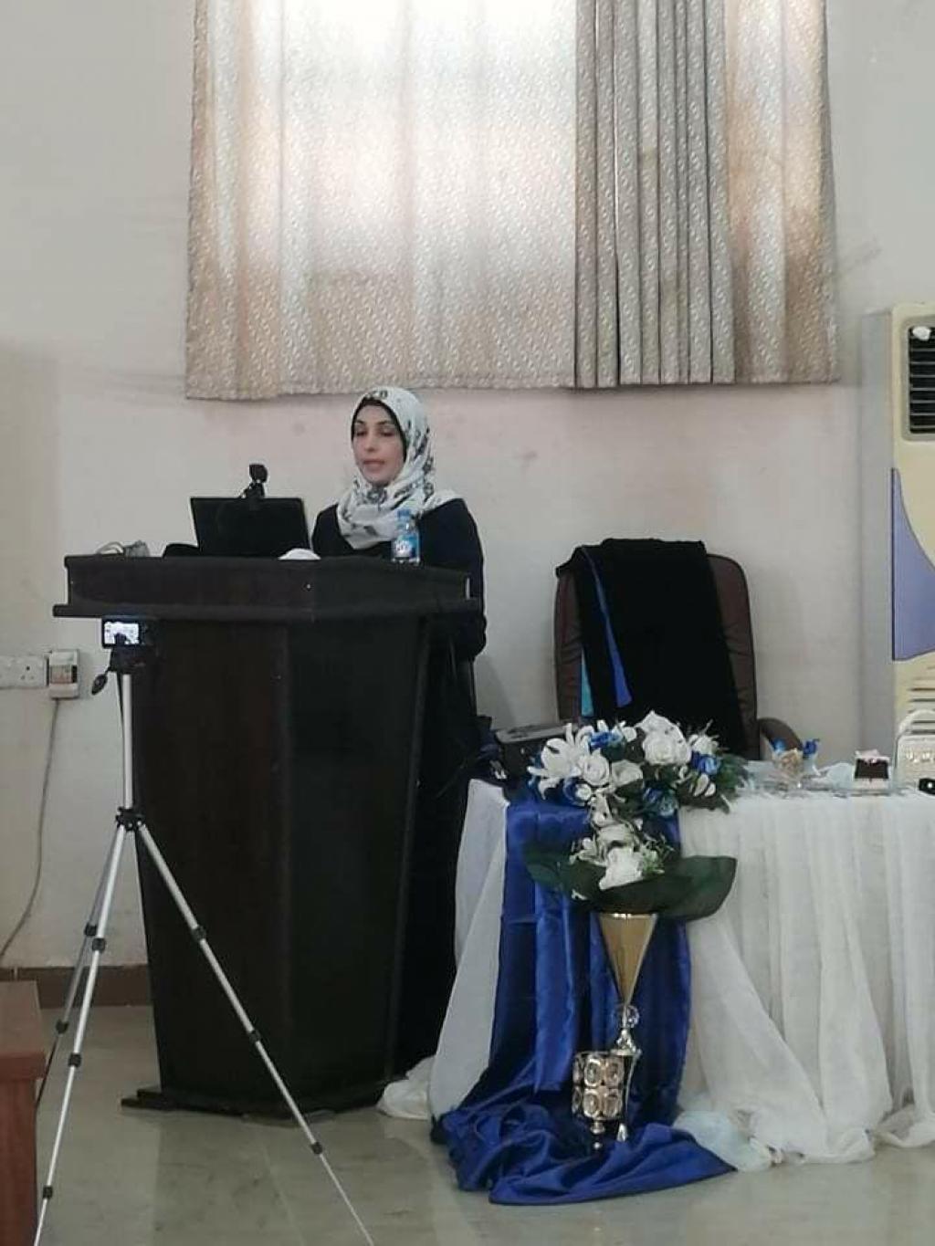 بحضور السيدة عميدة كلية العلوم الأستاذ المساعد الدكتورة هيام عادل إبراهيم الطائي و بإشراف الدكتورة ساجدة عزيز عبود جرت يوم الثلاثاء الموافق 2020/9/8 مناقشة أطروحة الدكتوراه للطالبة إيمان طه ياسين من قسم علوم الحياة والموسومة بـ : ” تقييم المعاملات المسبقة بأشعة ليزر الدايود و حامض الفولك في الانبات ونمو بادرات البازلاء Pisum sativum L. و كالسه تحت الإجهاد الملحي” تضمنت الدراسة استخدام أشعة الليزر كعامل فيزيائي و حامض الفوليك كعامل كيميائي في زيادة مقاومة كالس البازلاء للشد الملحي ، حيث تضمن العمل المحاور التالية :المحور الاول : إستخدام تقنية زراعة الأنسجة النباتية لدراسة بعض المتغيرات الفسيولوجية و الكيميائية الحاصلة في مؤشرات نمو بادرات البازلاء و كالسه تحت الإجهاد الملحي المحو الثاني : التوصل الى إمكانية إستخدام شعة ليزر الدايود الحمراء و المعاملة بحامض الفولك في الحد من التأثيرات الضارة للإجهاد الملحي في بادرتا البازلاء و كالسه