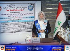 شهد قسم علوم الحياة في كلية العلوم – جامعة الموصل، يوم الأربعاء 13 آب 2025، مناقشة أطروحة الدكتوراه للطالبة مروة بدر فالح عبد الرحمن العبادي، الموسومة ” تأثير التطفير الفيزيائي على إنتاج إنزيم L-Asparaginase من بعض الخمائر المعزولة محلياً ودراسة بعض تطبيقاته الحيوية ” حضر جانباً من المناقشة السيدة عميد كلية العلوم الأستاذ الدكتورة هيام عادل إبراهيم، برفقة معاونيها للشؤون العلمية والإدارية، والسيد رئيس القسم، وعدد من تدريسي الكلية.