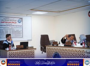 حضر جانباً من المناقشة السيد رئيس قسم الكيمياء الأستاذ الدكتور سالم جاسم محمد المحترم، وعدد من تدريسي القسم وطلبة الدراسات العليا.