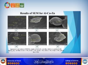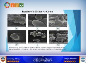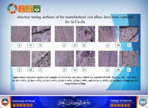 ناقش قسم الفيزياء في كلية العلوم بجامعة الموصل، يوم الأربعاء الموافق 27 آب 2025، أطروحة الدكتوراه الموسومة ” تصنيع سبائك ثلاثية Al-Cu-Zn، Al-Cu-Sn ودراسة تأثير عناصر السبك Zn، Sn على الخصائص الميكانيكية لهذه السبائك”، التي تقدم بها الطالب رائق رافع عمر، حضر المناقشة السيد رئيس القسم وعدد من تدريسي الكلية وطلبة الدراسات العليا.