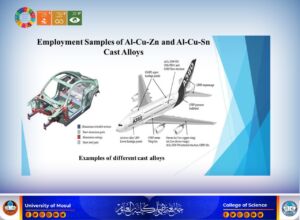 - الهدف الثالث عشر: العمل المناخي (سبائك خفيفة الوزن وفعالة تساهم في تقليل استهلاك الوقود وانبعاثات الكربون في الطائرات والسفن) .