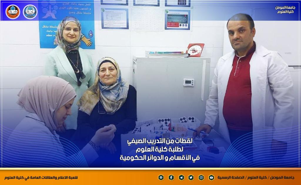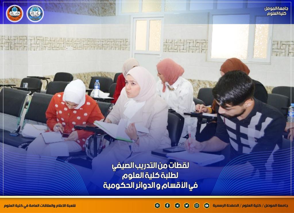 استمرار اعمال التدريب الصيفي لطلبة أقسام كلية العلوم في الأقسام و المستشفيات و الدوائر الحكومية ، مع المتابعة المستمرة لمشرفيهم .تمنياتنا لطلبتنا المجتهدون بالتوفيق الدائمشعبة الإعلام والعلاقات العامةالإثنين 5 أيلول 2022