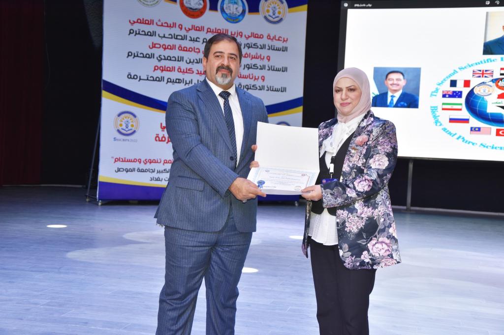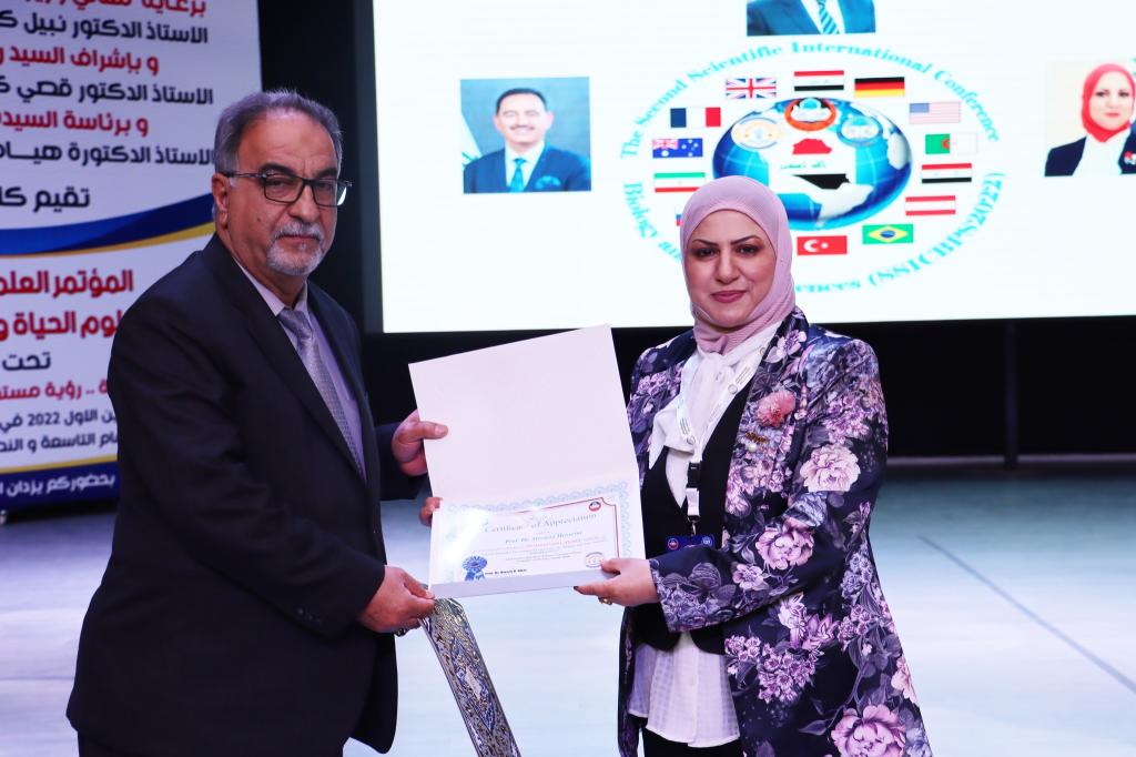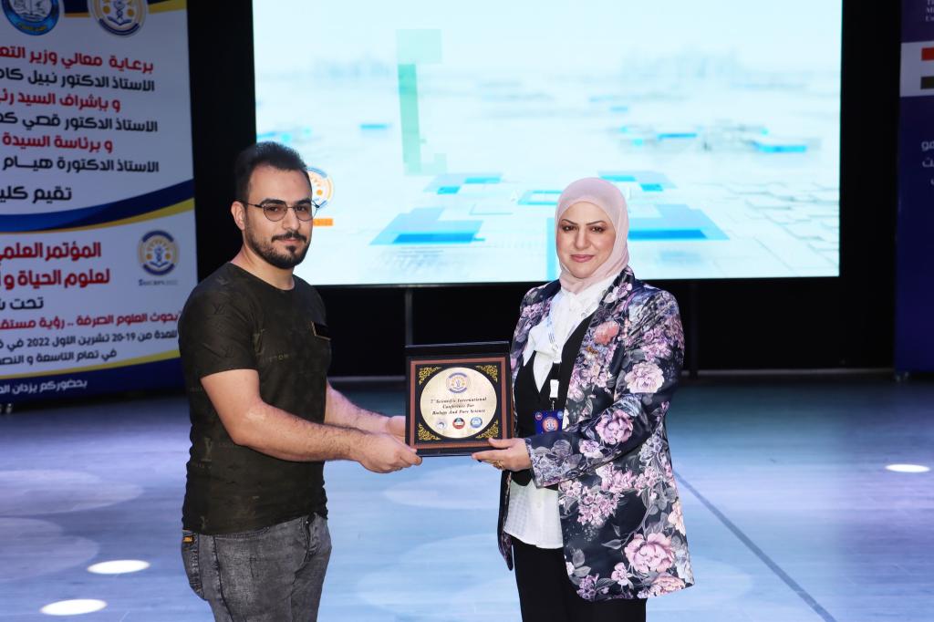 شملت أعمال اليوم الثاني لمؤتمرنا إقامة عدد من المحاضرات و الورش الدولية و المحلية حضر جانباً منها السيدة العميد و رئيس المؤتمر الأستاذ الدكتورة هيام عادل إبراهيم وحاضر فيها نخبة من العلماء الدوليين و السيد مدير مركز التحسس النائي في الجامعة ، كما حضر جانباً من أعمال المؤتمر سيادة النائب أحلام الكاكئي.تم بعد ذلك تكريم الشخصيات الدولية الأكاديمية و الشركات الداعمة للمؤتمر و اللجان التحضيرية ، ثم كلمات الشركات الداعمة للمؤتمر، بدورها كرمت شركة الكرم الطبية السيدة العميد و السيد رئيس قسم علوم الحياة و اللجنة التحضيرية ، واستمر انعقاد الجلسات البحثية لباحثينا الأكارم في قسم علوم الحياة .في ختام أعمال المؤتمر القت رئيس المؤتمر أبرز التوصيات التي خرج بها المؤتمر، مثنية على التماسك الكبير و العمل الجماعي الدؤوب الذي أبدته أسرة كلية العلوم في هذا المحفل الدولي.حضر أعمال اليوم الثاني كذلك جمع غفير من تدريسي و طلبة الكلية و الجامعة و عدد من تدريسي الكليات و الجامعات العراقية.مزيداً من التفاصيل … لاحقاًشعبة الإعلام و العلاقات العامةالخميس 20 تشرين الأول 2022