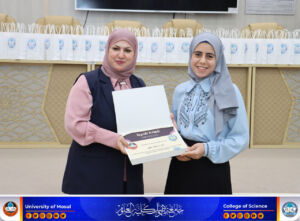 برِعايـةٍ مُباركـةِ من السيِّـد رئيس جامعـةِ الموصـل الأُستـاذ الدكتـور وحيـد محمـود الإبراهيمـي المُحتـرم وبإشـرافِ وتوجيـهِ السَّيِّــدة عميـد كُلِّيَّـةِ العلــومِ الأستـاذ الدكتـور هِيـام عـادِل إبراهيـم المُحتـرمــة أقامَـت لجنَـةُ شُـؤونِ المـرأةِ بالتَّعـاونِ مع وِحـدةِ الإرشـادِ ووِحـدةِ النَّشاطـاتِ الطُّلابيَّـةِ في كُلِّيَّتِنــا يـوم الإثنيـن المُوافِـق 28 نيسان 2025 وعلـى رِحـابِ قاعـةِ الدكتـور فـاروق العُمـريِّ حفـلَ تكريـمِ لطلبَـةِ العلــوم المٌتمَيِّزيـن وأعضـاءِ فريـق الإبـداعِ التَّطوُّعِـيِّ بالإضافَـةٍ إلى مُمثِّلـي المراحِـل الدِّراسِيَّـةِ لجميـعِ الأقسـامِ العلمِيَّــةِ وأصحـابِ المُحتـوى الهـادِفِ تقديـراً لإنجازاتِهِـم وأخلاقِهِـم الحميـدةِ وإيصـالِ صـورةٍ هادِفــةٍ عن الكُلِّيَّـــةِ. تخلَّلَ الحفـلُ كلمـاتٍ تحفيزِيَّـةً من السَّيِّـدةِ العميـد وأشـادتْ بالـدَْور الفَعّـال الَّـذي قامـوا به في تعزيـزِ روحِ الإبتِكــارِ والتَّمَيُّـزِ الأكاديمِـيِّ.