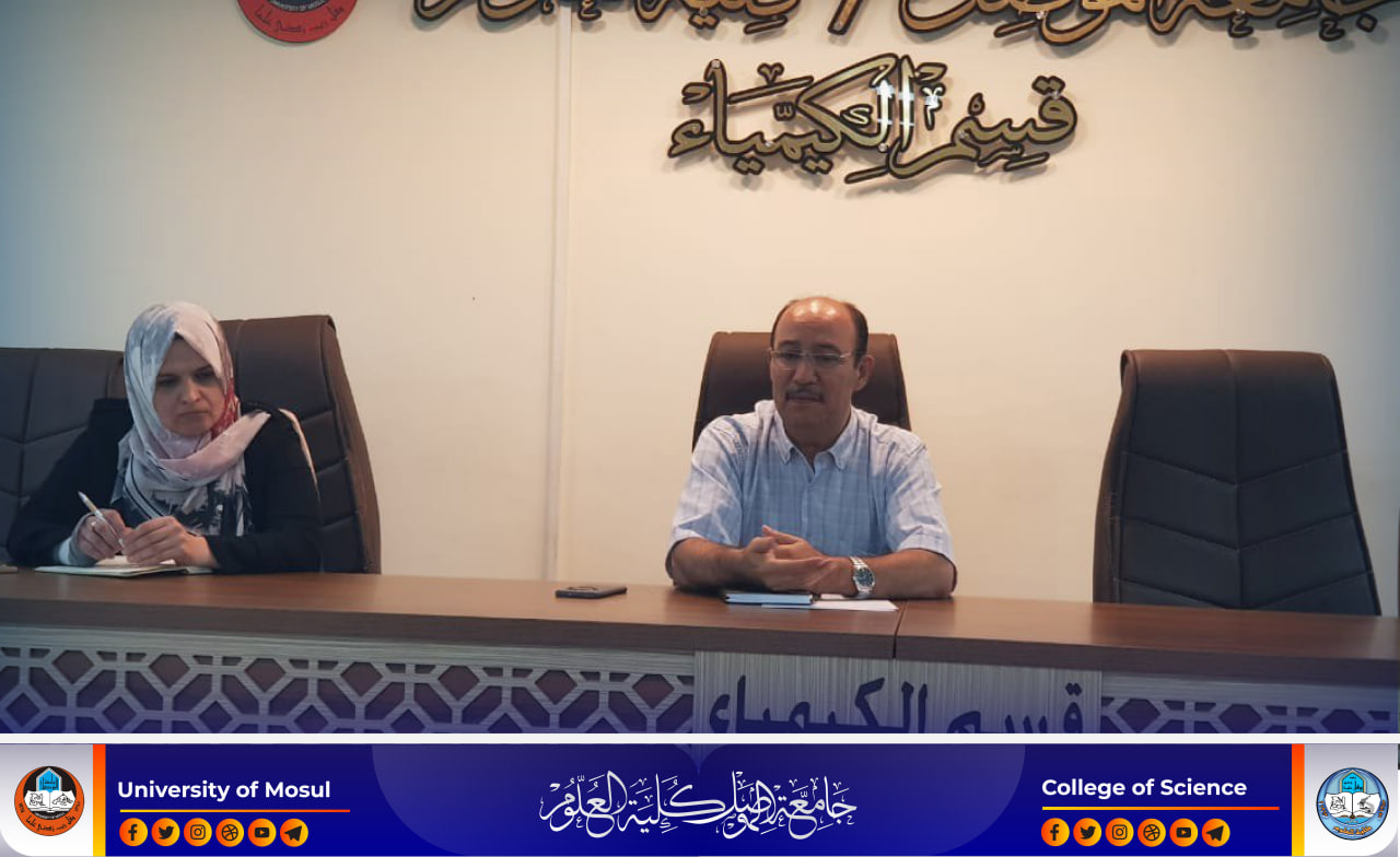 تنفيذاً لتوجيهات السيدة عميد كلية العلوم الأستاذ الدكتورة هيام عادل إبراهيم المحترمة، عقد قسم الكيمياء يوم الثلاثاء الموافق 2 أيلول 2025 اجتماعاً برئاسة الأستاذ الدكتور سالم جاسم محمد المحترم رئيس القسم ، وبحضور الأستاذ المساعد باسمة أحمد المحترمة مقررة القسم، وأعضاء الهيئة التدريسية كافة.