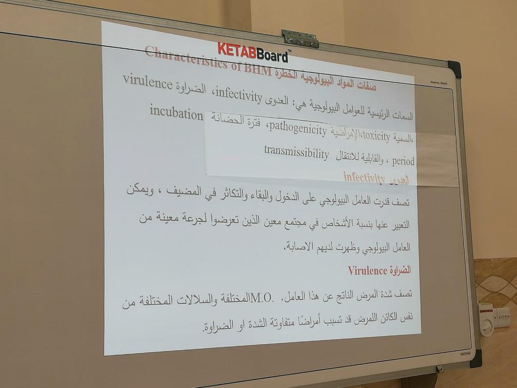 - في اليوم الثالث تم تعريف أصناف المواد البيولوجية الخطرة ( البكتيرية والفايروسية والفطرية والطفيلية ) التي تنشأ من مرافق الرعاية الصحية و المختبرات البحثية مع التركيز على المخلفات المعدية من عينات المرضى أو الأدوات الحادة وأنسجة الجسم أو الحيوانات المختبرية و كيفية انتقالها الى الإنسان وأهم الاصابات الناتجة عن التعرض لها .شعبة الإعلام والعلاقات العامةالثلاثاء 15 تشرين الثاني 2022