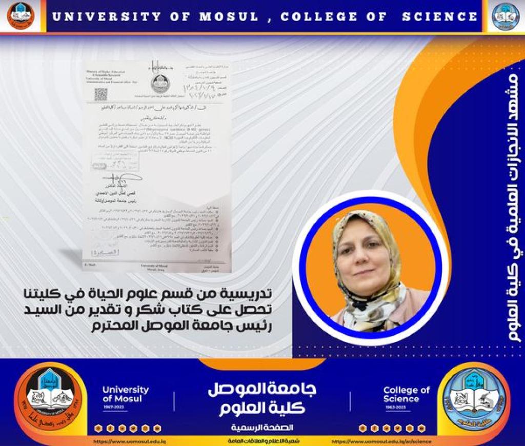 اختيار تدريسي في كليتنا عضواً في هيئة تحرير مجلة عالمية ، و منحه كتاب شكر من مجلة عالمية أخرى :