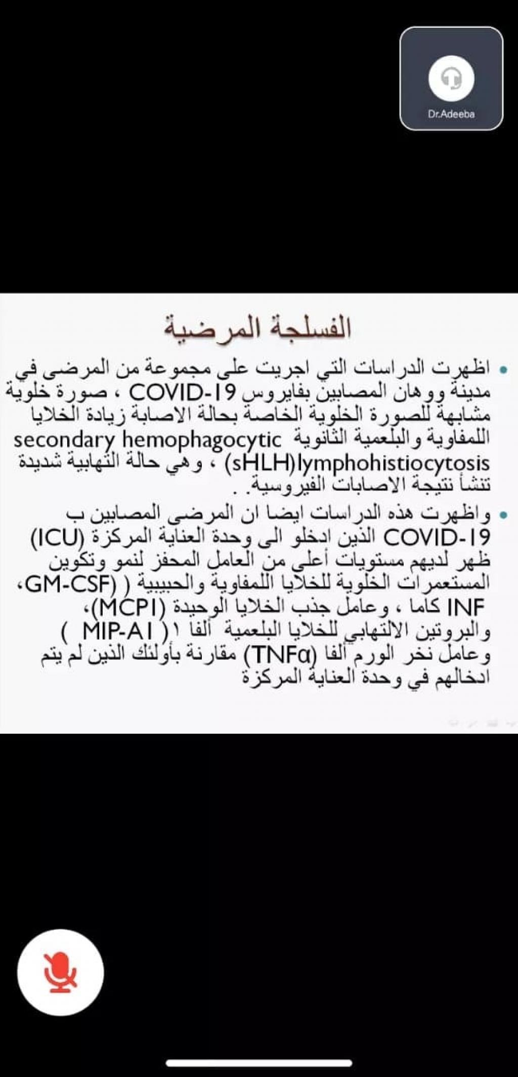 شهد يوم الثلاثاء الموافق 19/1/2012 وفي تمام الساعة الثامنة مساءا استمرارا لفعاليات التوعية بفايروس كورونا COVID -19 ولليوم الثالث على التوالي وبحضور رئيس قسم علوم الحياة الاستاذ المساعد رائد سالم الصفار وبمشاركه متميزه وواسعه لتدريسي الكليه وجامعة الموصل فضلا عن عدد من منتسبي صحة نينوى وطلبة الدراسات العليا والاولية………………شملت فعاليات اليوم الثالث محاضرة القتها الاستاذ الدكتورة (اديبة يونس شريف) بعنوان”عاصفة السايتوكينات في مرضى فايروس كورونا واكتئاب مابعد الاصابة بفايروس كورونا”كما شملت محاضرة بعنوان” قبل المعركة هكذا تسلح جهازك المناعي لمقاومة فايروس كورونا” القاها الاستاذ المساعد الدكتور (محمود عبد الجبار الطوبجي)مع التنويه ان محاضرات اسبوع التوعية الالكترونية مستمرة يوميا وعند الساعة الثامنة مساءا الى يوم 21/1/2021