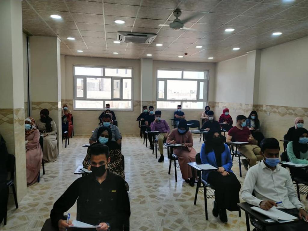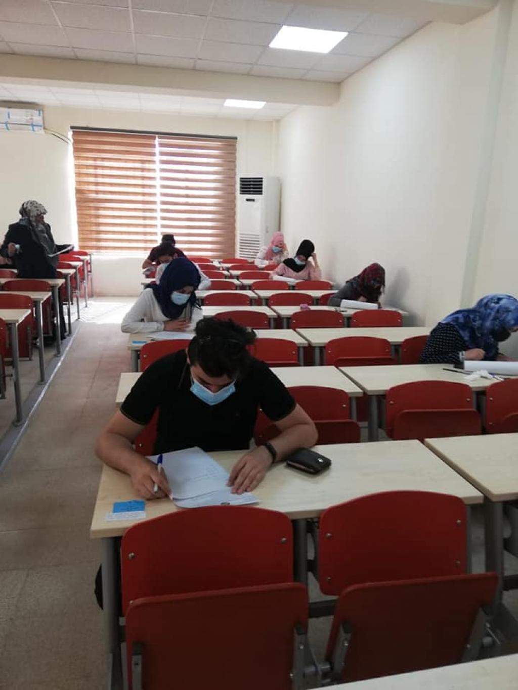 استمرار الامتحانات النظرية الحضورية في الأقسام العلمية لكلية العلوم لليوم الثالث على التوالي حيث أدّى صباح يوم السبت الموافق 24 نيسان 2021 طلبة الكلية امتحاناتهم النظرية في أجواء من الاجراءات الاحترازية و التباعد الاجتماعي ، تفقدت السيدة عميد الكلية الأستاذ المساعد الدكتورة هيام عادل الطائي يرافقها السيد المعاون العلمي الأستاذ المساعد الدكتور محمد صبحي الامتحانات والتقت بالطلبة كما اطلعت على الاجراءات الوقائية مؤكدةً على أهميتها فضلاً عن رفع معنويات الطلبة بالكلمات التشجيعية و أن يتطلعوا الى انهاء امتحاناتهم بكل جهد و تفوق .كل التوفيق والنجاح لطلبتنا الأعزاء .
