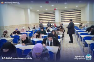 بتوفيـق الله تواصـل كُلِّيَّــة العلـومِ إجراء الامتحانات النظرية النهائية للفصل الدراسي الأول للعـام الدراسي 2025 – 2026، وبإشراف مباشر من عمادة الكلية واللجان الامتحانية، مع الالتزام بالتعليمات والضوابط المعتمدة، بما يضمن توفير الأجواء المناسبة لأداء الإمتحانات بكل يسر وانسيابية، حيـث تابعت السَّيِّدة عميد كُليَّةِ العلومِ الأُستاذ الدكتورة هِيــام عـادل إبراهيـم المُحترمـة سيـر الإمتحانـات وطبيعـة الأسئلـة ومتابعـة شـؤون الطلبة والوقـوف على احتياجاتهـم.
