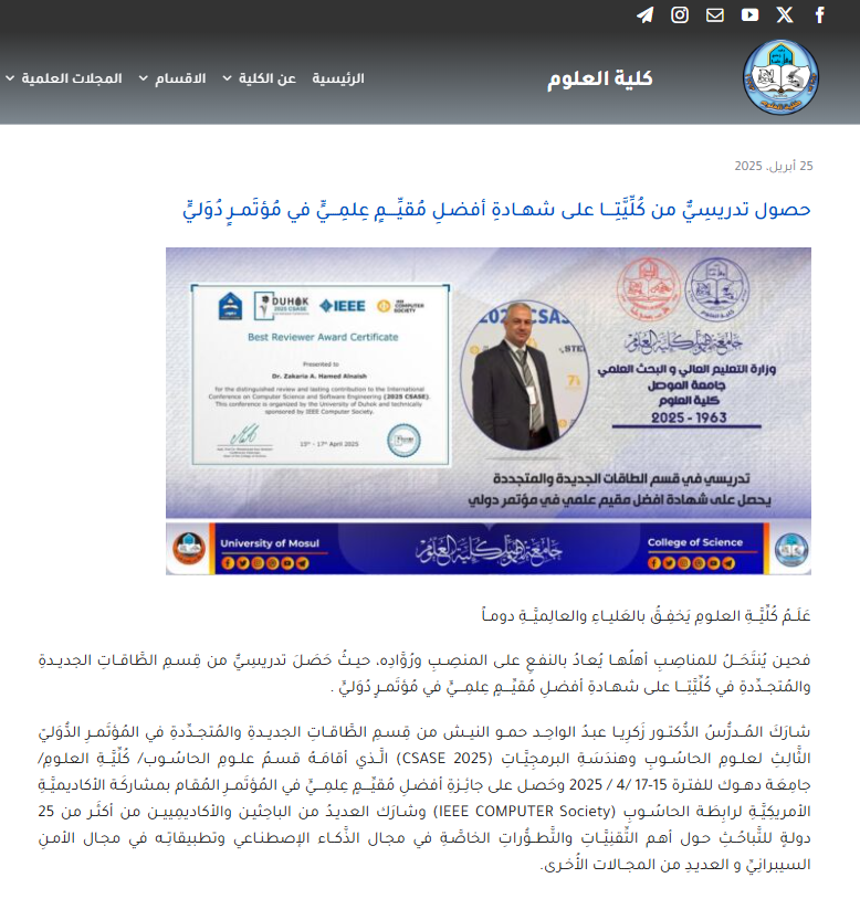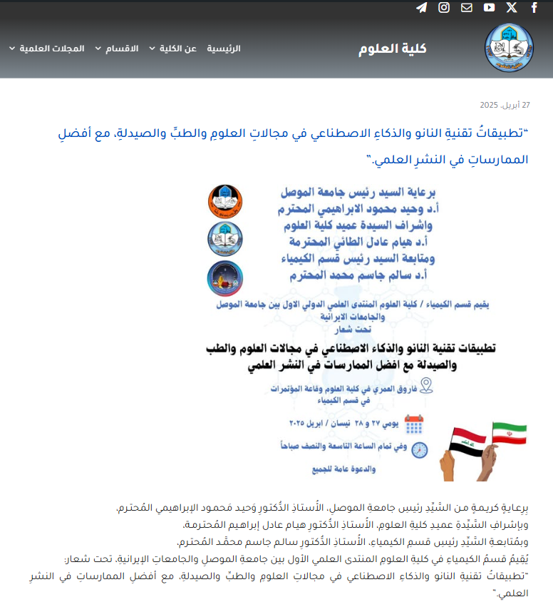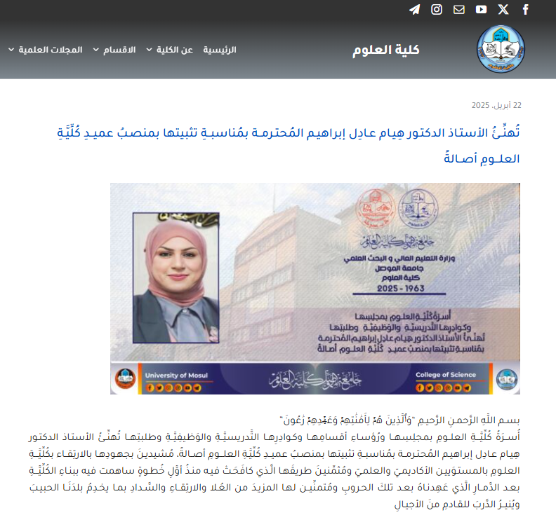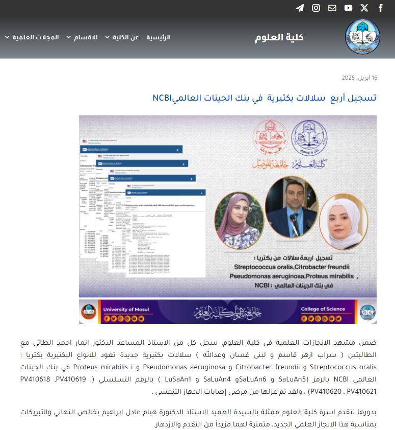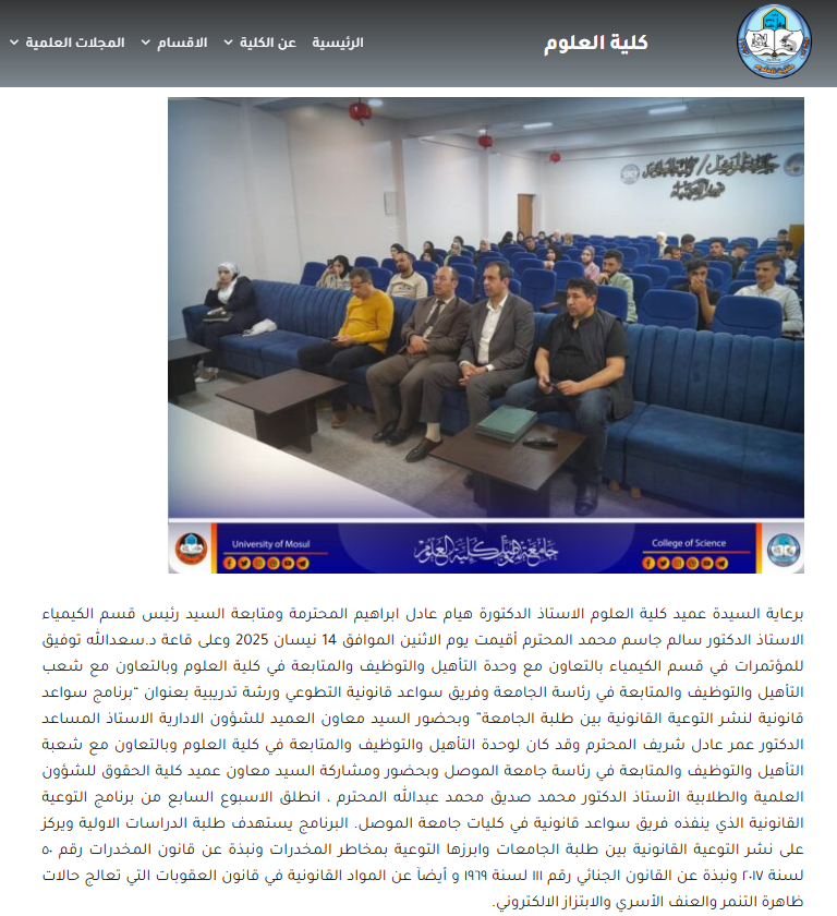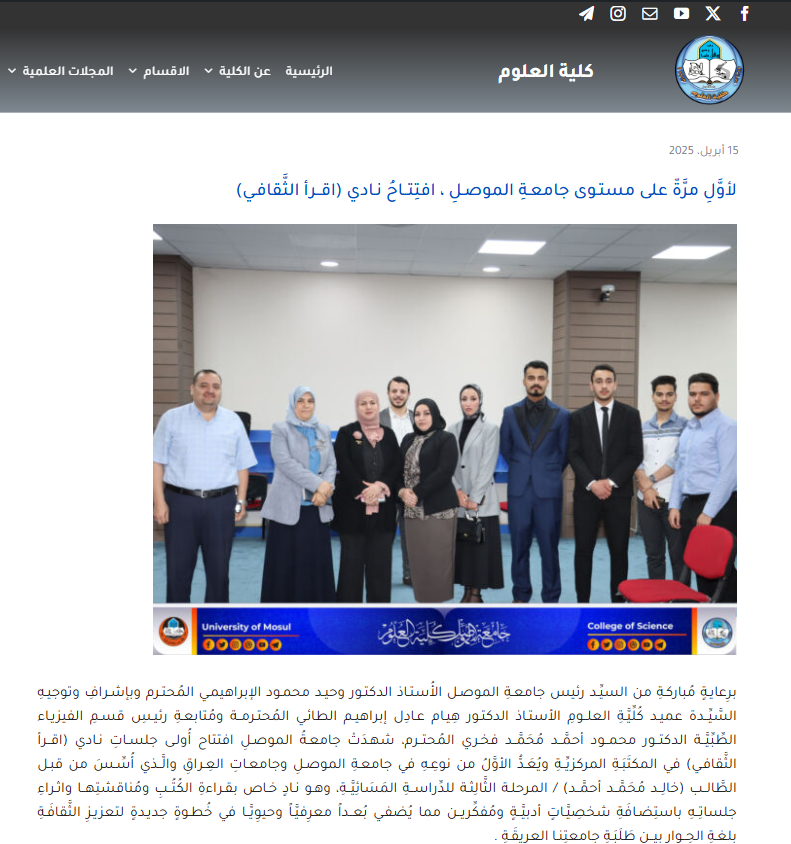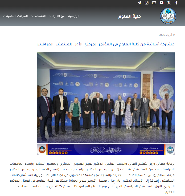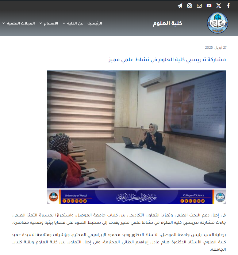 منجزات كلية العلوم لعام 2024 : اضغط هنا