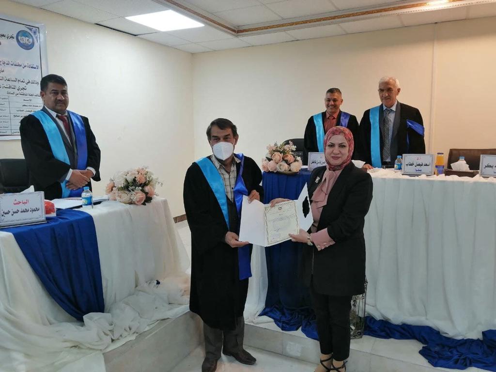 ناقشت كلية العلوم في جامعة الموصل يوم الخميس الموافق 11 تشرين الثاني 2021 اطروحة الدكتوراه الموسومة ” الاستفادة من مخلفات الدجاج في إنتاج حفازات غير متجانسة لتحضير وقود الديزل الحيوي ومواد مازة لإزالة الكبريت من وقود الكازولين ” حضر جانباً منها السيدة عميد الكلية الأستاذ المساعد الدكتورة هيام عادل الطائي و معاون العميد العلمي الاستاذ المساعد الدكتور محمد صبحي وعدداً من تدريسيي القسم .تناولت الدراسة التي تقدم بها الطالب ( محمود محمد حسن حسين ) في قسم الكيمياء / فرع الكيمياء الصناعية الاستفادة من مخلفات الدجاج وتم تحضير حفازات استخدمت في تحضير الوقود الحيوي من بقايا زيت الطعام المستعمل ، وكذلك تم تحضير الكاربون المنشط ومتراكب الكاربون ، تم تحضير الحفازات غير المتجانسة القاعدية من عظم وتم تشخيصها من خلال تقنيات متنوعة مثل المساحة السطحية بطريقة BET ، والماسح الضوئي الإلكتروني ، حيود الأشعة السينية، طيف الأشعة تحت الحمراء، المنحني الحراري الوزني، والتحليلي العنصري باستخدام تقنية EDX..أعطى الحفاز غير المتجانس القاعدي الذي تم تحضيره عن طريق استخدام الرماد الناتج من عظام الدجاج ، أعلى حصيلة من وقود الديزل الحيوي (% 91.21) عند 65 م° لمدة 120 دقيقة باستخدام 6.0 ٪ وزنا من الحفاز ، في حين أعطى الحفاز غير المتجانس القاعدي (عظام الدجاج المعالجة بـ 40٪ وزنا من هيدروكسيد البوتاسيوم والمعالج حراريا عند 700 م° لمدة 120 دقيقة ) أعلى حصيلة من وقود الديزل (97.44 %) عند 60 م° لمدة 120 دقيقة. مواصفات وقود الديزل المحضر كانت مطابقة لتلكم المثبتة لوقود الديزل الحيوي القياسي ASTM D6751.استنتجت الدراسة الحالية استعمال مخلفات الكتلة الحيوية متمثلة بمزيج عظام الدجاج و شحوم الدجاج كمادة أولية قاد إلى تحضير حفازات غير متجانسة قاعدية مختلفة فضلا عن وقود الديزل الحيوي و الفحم المنشط ومتراكبه النحاسي. كذلك ان استعمال مادة أولية كهذه يمكن أي يقلل من التلوث البيئي الناتج عن تراكم تلك المخلفات العضوية لا سيما ان هذه المخلفات تتوفر في قطرنا ومدينتنا بكميات كبيرة جدا كون قطرنا و مدينتنا من المنتجين لمصادر هذه المخلفات. وكذلك حصيلة وقود الديزل الحيوي باستعمال الحفاز المحضر من كلسنة عظام الدجاج حراريا وصل إلى 91.21 %، بينما بلغت حصيلة الوقود المنتج عبر استعمال الحفاز المحضر من عظام الدجاج المعالجة بهيدروكسيد البوتاسيوم ثم الكلسنة 97.44 %.ترأس لجنة المناقشة الأستاذ الدكتور عماد طه بكر وعضوية كل من الأستاذ الدكتور أسعد فيصل خطاب والأستاذ المساعد الدكتورة أروى محمد عثمان والأستاذ المساعد الدكتورة لبنى عبدالعزيز صالح والأستاذ المساعد عادل قادر حسن ، و بإشراف وعضوية الأستاذ الدكتور عبدالرحمن باسل فاضل.قدمت السيدة عميد الكلية الاستاذ المساعد الدكتورة هيام عادل الطائي كتاب شكر وتقدير الى الممتحنين الخارجيين الأستاذ الدكتور عماد طه بكر جامعة تكريت/ كلية العلوم و الدكتورة أروى محمد عثمان الجامعة التقنية الشمالية /قسم الصناعات الكيميائية ؛ لتكبدهما عناء السفر و حضور المناقشة .
