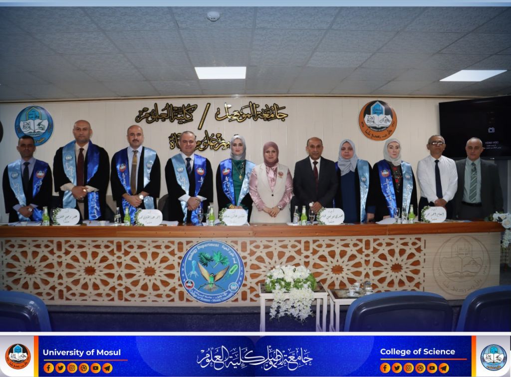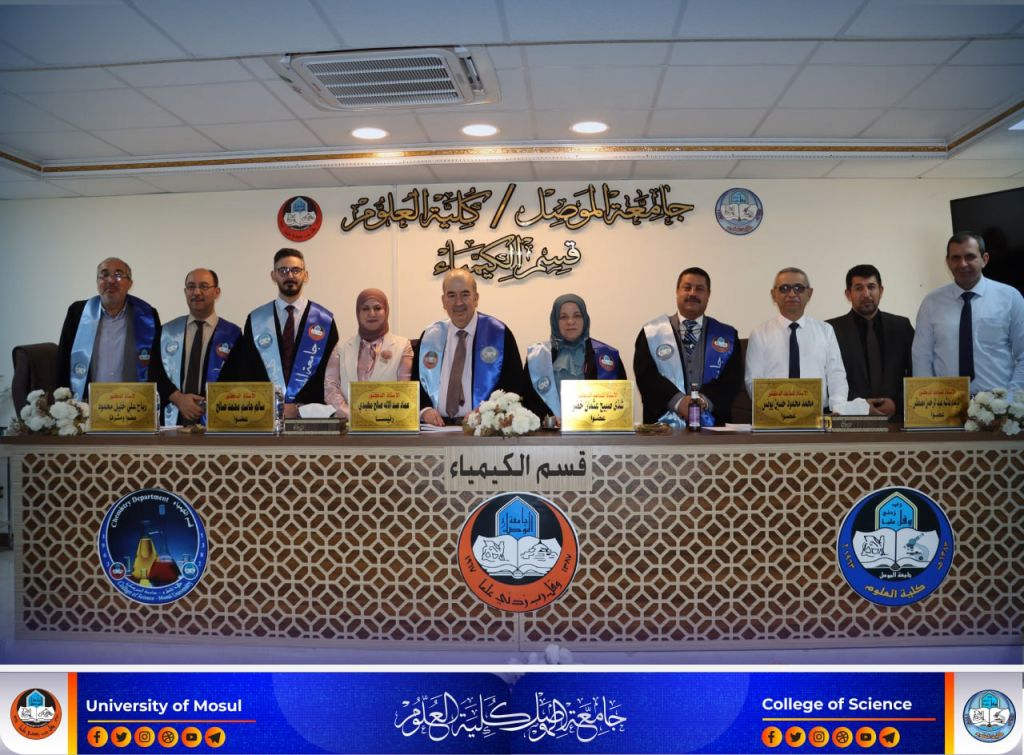 ترأس لجنة المناقشة السيد رئيس جامعة الموصل الأستاذ الدكتور قصي كمال الدين داؤود الأحمدي وعضوية كل من الأستاذ الدكتور حسن أحمد علي الجميلي والأستاذ الدكتور حسين صابر محمد علي والأستاذ المساعد الدكتور فرهاد أحمد محمد مصطفى والأستاذ المساعد الدكتور فلاح عبد محمدعزاوي ، وعضوية وإشراف كل من الأستاذ المساعد الدكتور عاهد يونس عبدالله الملاح والأستاذ المساعد الدكتور عادل قادر حسين إسماعيل .