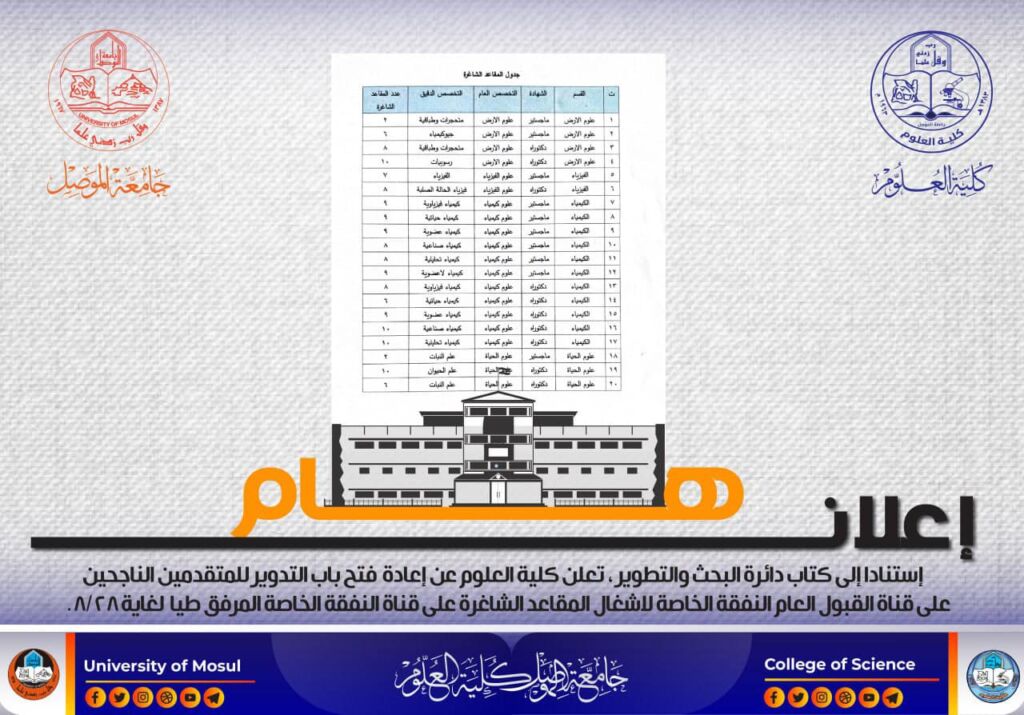 ناقش قسم علوم الأرض في كليتنا أطروحة الدكتوراه الموسومة ” الطباقية الحياتية والطباقية التتابعية لدورة ( التورونيان الأعلى إلى الكامبانيان الأسفل ) في شمال العراق ” يوم الخميس الموافق 22 آب 2024، حضر جانباً منها معالي السيد وزير الثقافة الأستاذ الدكتور أحمد فكاك البدراني المحترم يرافقه السيد رئيس جامعة الموصل الأستاذ الدكتور قصي كمال الدين الأحمدي المحترم والسيد مساعد رئيس جامعة الموصل للشؤون العلمية الأستاذ الدكتور منير سالم البدراني المحترم والسيدة عميد كلية العلوم الأستاذ الدكتورة هيام عادل إبراهيم الطائي المحترمة، والسادة معاونا العميد للشؤون العلمية والإدارية وعددا من تدريسي الكلية المحترمين .
