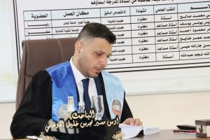 ترأس لجنة المناقشة الأستاذ الدكتور سالم علي محمد صالح وعضوية كل من الأستاذ المساعد الدكتورة ثائرة إدريس يونس يوسف و الأستاذ المساعد الدكتورة هناء شكر محمود أحمد و الأستاذ المساعد الدكتورة خالدة محمد عمر ضايع والأستاذ الدكتور صبحي محسن جار الله عيسى وبأشراف وعضوية الأستاذ الدكتور معاذ عبدالله نجم عبدالله .