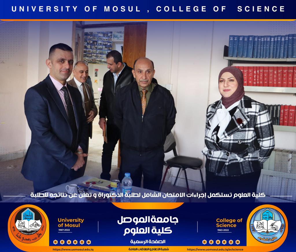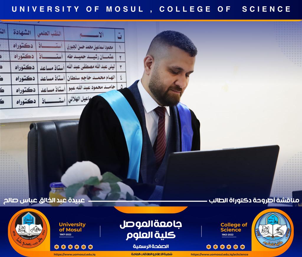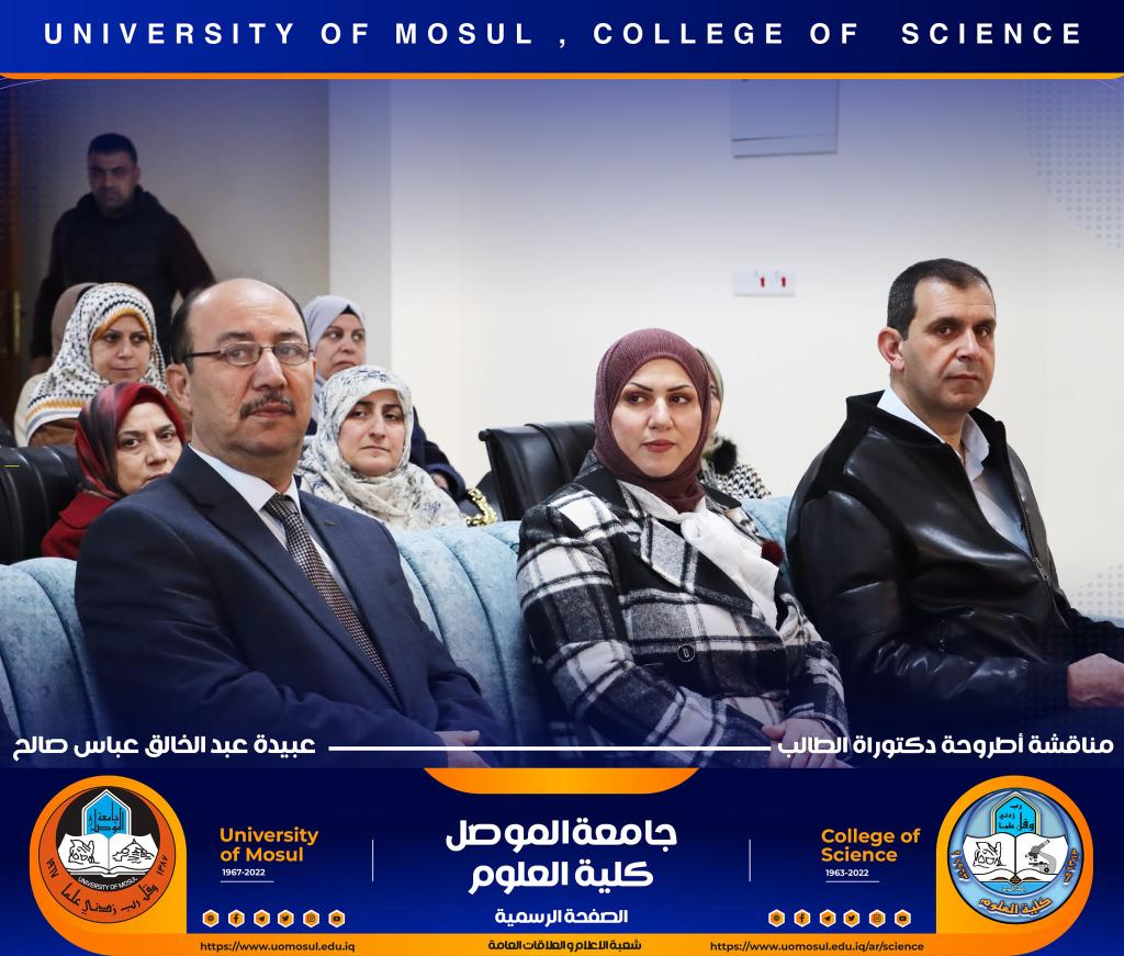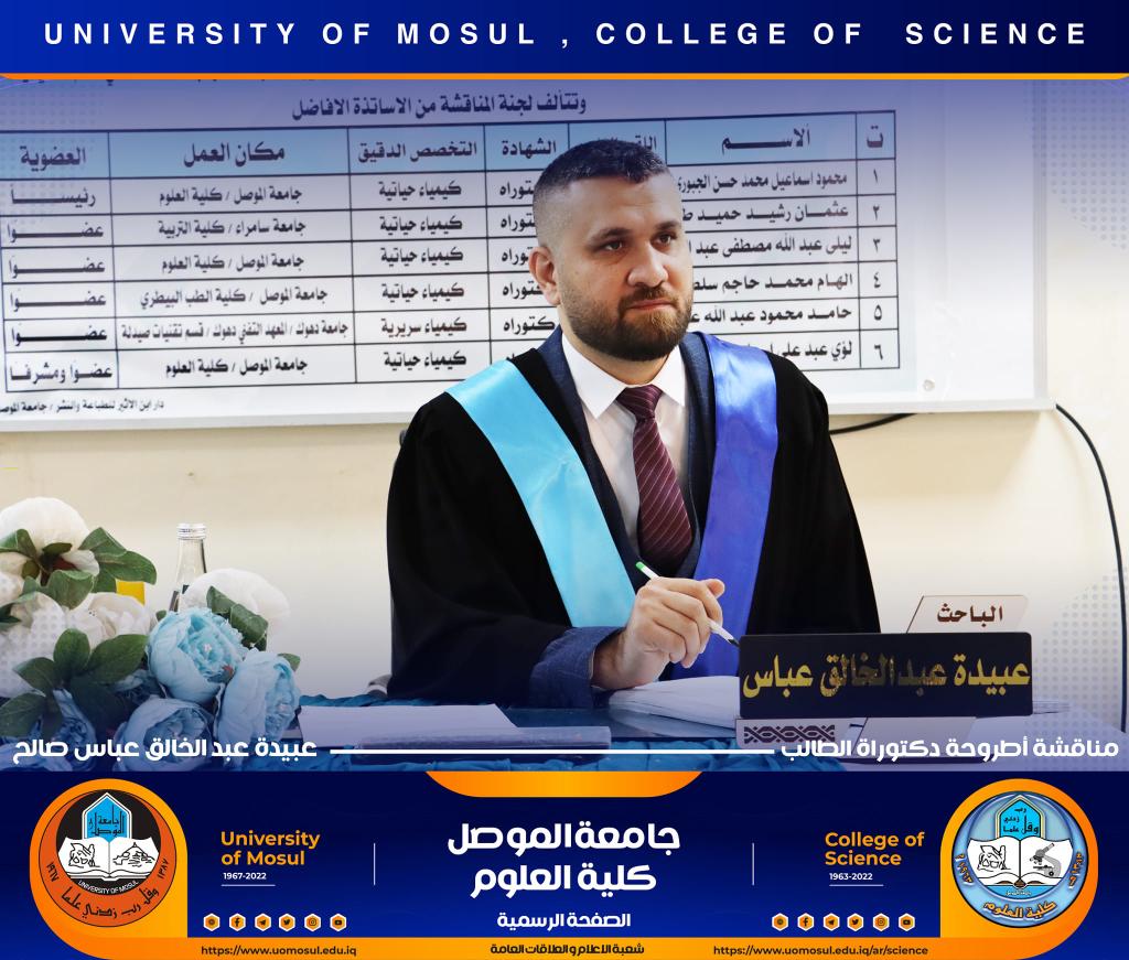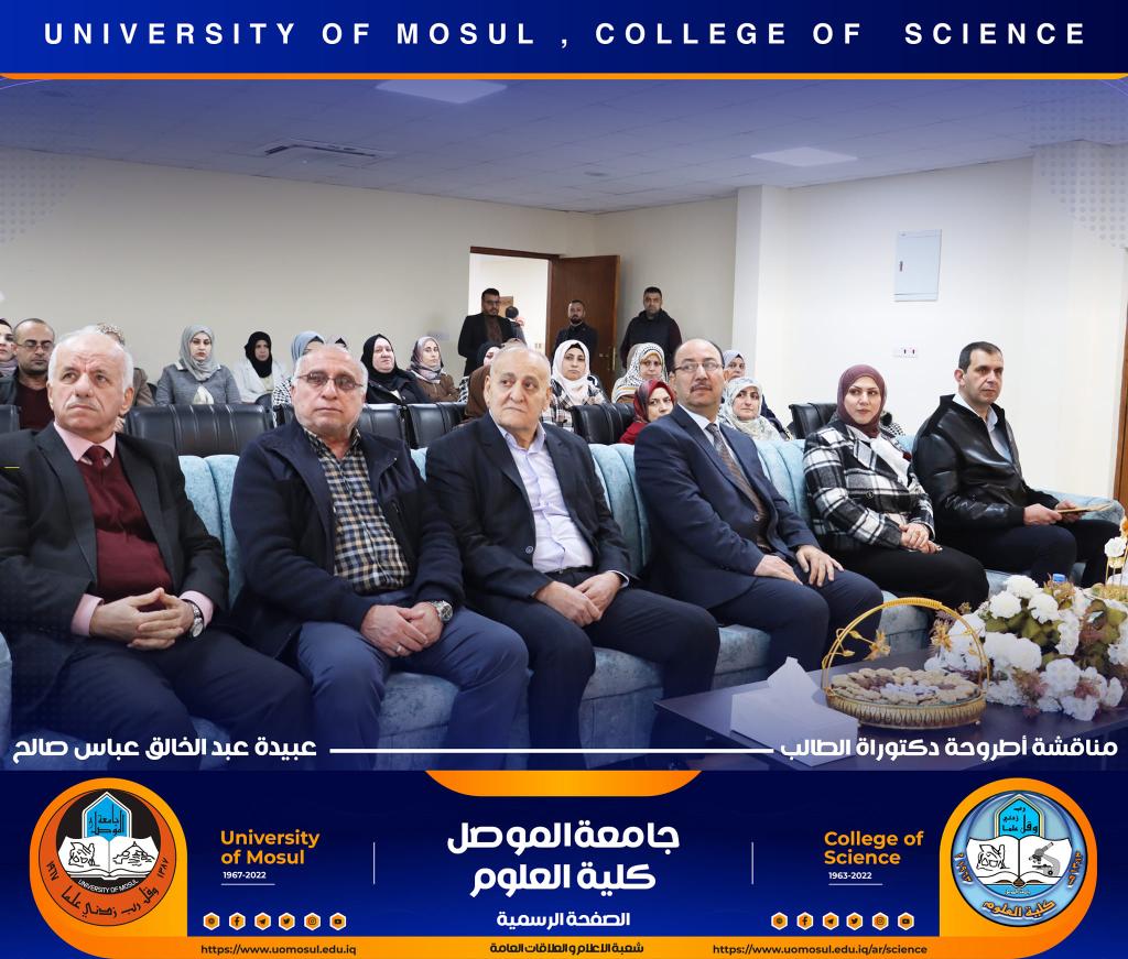 ناقش قسم الكيمياء في كلية العلوم بجامعة الموصل أطروحة الدكتوراه الموسومة ” دراسة مستوى المدكاين وعزله من مصل الدم لدى مرضى القلب والأوعية الدموية وعلاقته مع بعض الملوثات المعدنية السامة ” يوم الإثنين الموافق 5 كانون الأول 2022.حضر جانباً منها الأستاذ الدكتورة هيام عادل إبراهيم عميد الكلية والسيد المعاون الإداري والسيد رئيس القسم وعدد من تدريسي الكلية.تناولت الاطروحة التي تقدم بها الطالب ( عبيدة عبد الخالق عباس ) في فرع الكيمياء الحياتية ، دراسة على ميدكاين (MK) لمرضى أمراض القلب والأوعية الدموية (CVD) ، والمرضى في الدراسة تم تشخيصهم إكلينيكيًا بتصلب الشرايين (AP) ، واحتشاء عضلة القلب (MI) وفشل القلب (HF) ، بالإضافة إلى تقدير (25) متغير من متغيرات الكيموحيوية.أظهرت النتائج وجود زيادة معنوية في مستوى MK لمرضى AP وMI و HFخاصة عند الذكور من مجموعة مرضى MI. لوحظ انخفاض في المعادن الأساسية (الكالسيوم ، المغنيسيوم والحديد) في المرضى CVD ، خاصةً في مجموعة المرضى MI الإناث. وهناك مستويات عالية من المعادن الثقيلة مثل As وHg وCd في CVD خاصة في مجموعة مرضى APs مقارنة بمجموعة الاصحاء.أشارت النتائج إلى عدم وجود تأثير في العامل الوراثي لدى المرضى CVD، فقط هناك زيادة في مستويات ALT و ALP وانخفاض في Hg و GSH في المرضى الذين ليس لديهم تاريخ وراثي. لوحظ ان هناك تحسن جزئي في حالة المرضى الذين يعانون من أمراض القلب والأوعية الدموية والذين خضعوا لعمليات جراحية ، مقارنة بالمرضى الذين لم يخضعوا لأي عمليات جراحية.ترأس لجنة المناقشة الأستاذ الدكتور محمود إسماعيل حسن وعضوية كل من الأستاذ الدكتور عثمان رشيد حميد من جامعة سامراء و الأستاذ المساعد الدكتورة ليلى عبد الله مصطفى والأستاذ المساعد الدكتورة الهام محمد حاجم والأستاذ المساعد الدكتور حامد محمود عبد الله من جامعة دهوك ، وبإشراف وعضوية الأستاذ الدكتور لؤي عبد علي الهلالي.شعبة الإعلام والعلاقات العامةالإثنين 5 كانون الأول 2022