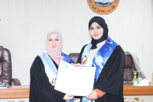 قدّمت السيدة عميد الكلية كتاب شكر وتقدير للأستاذ المساعد الدكتورة منال صالح مهدي من كلية الزراعة / جامعة تكريت ؛ لتكبدها عناء السفر ومشاركتها في لجنة المناقشة.