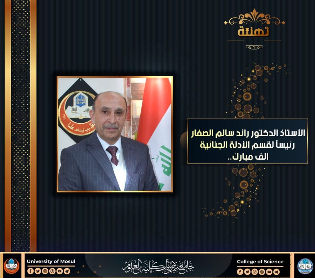 ناقش قسم الكيمياء في كلية العلوم بجامعة الموصل اطروحة الدكتوراه الموسومة “دور الأبيلين في مرضى إصابات الكلية الحادة وعلاقته ببعض المتغيرات الكيموحيوية في مدينة الموصل” يوم الخميس الموافق 4 كانون الاول 2024 حضر جانباً منها السيدة عميد كلية العلوم الأستاذ الدكتورة هيام عادل إبراهيم والسادة معاوني العميد للشؤون العلمية والإدارية ورئيس القسم وعدداً من تدريسي الكلية.