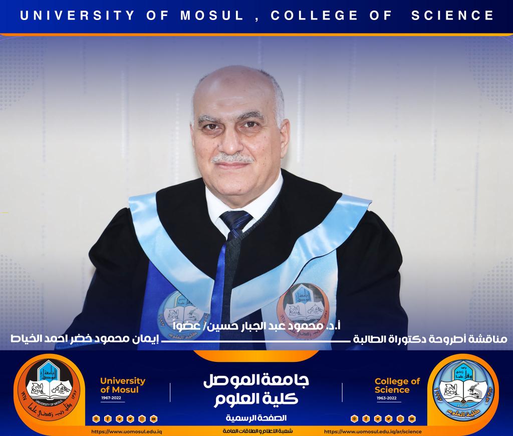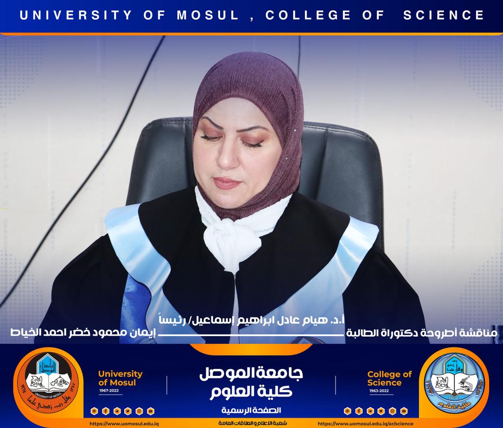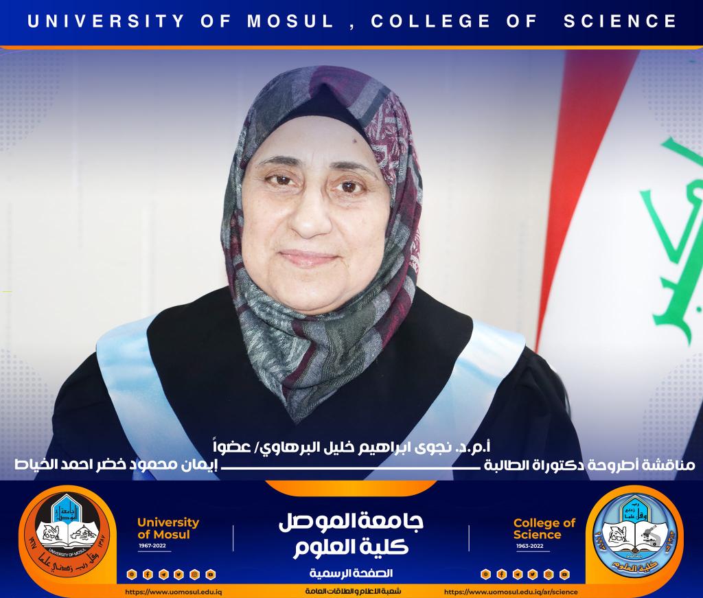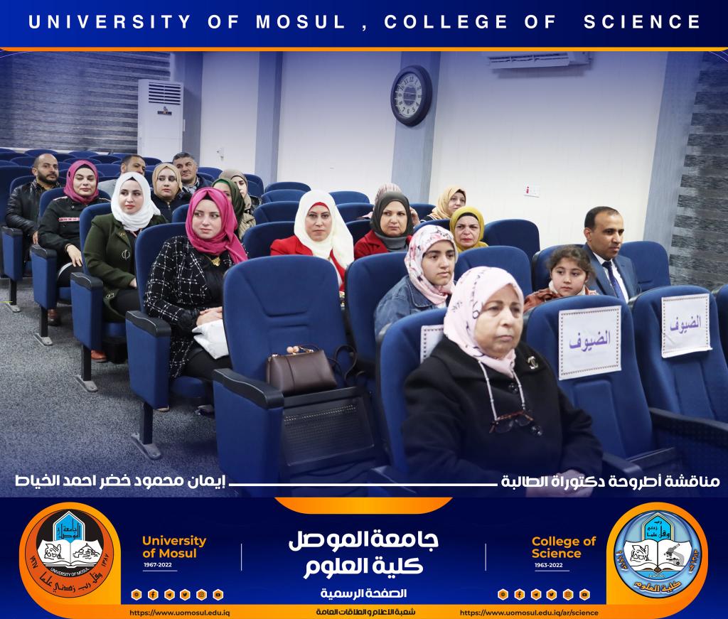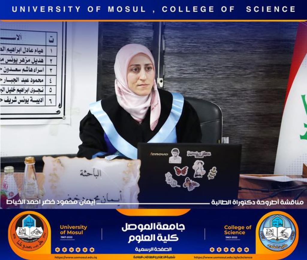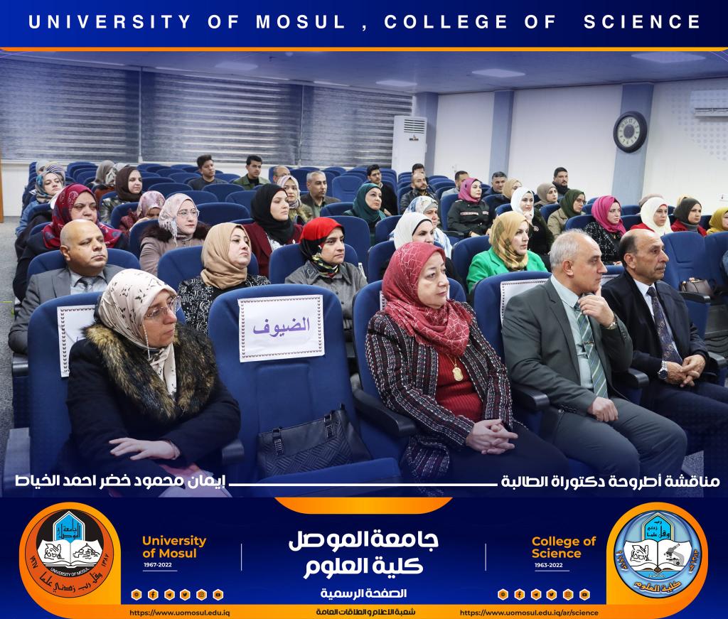 ناقش قسم علوم الحياة في كلية العلوم / جامعة الموصل اطروحة الدكتوراه الموسومة ” عزل وتشخيص البكتريا Aggregatibacter actinomycetemcomitans ودراسة الفعالية البايولوجية للسموم المنتجة منها ” يوم الخميس الموافق 15 كانون الأول 2022.ترأس لجنتها السيد عميد كلية العلوم الأستاذ الدكتورة هيام عادل إبراهيم وحضر جانباً منها السيد رئيس القسم و عدد من تدريسي الكلية.تناولت الدراسة التي تقدمت بها الطالبة ( إيمان محمود خضر ) / فرع علم الأحياء المجهرية عدد من المحاور اذ تضمنت عزل البكتريا Aggregatibacter actinomycetemcomitans من الأشخاص المصابين بمختلف الأعمار التي تراوحت من مرحلة ما قبل المراهقة ومرحلة الكهولة ، و تأكيد تشخيص البكتريا جينيا وبالاعتماد على الكشف عن النمط المصلي b وامتلاكها للجين cagE وللجين ltxA.تمكنت الدراسة من فصل ذيفان خلايا الدم البيض وتنقيته جزئيا باستخدام تقنية كروماتوغرافيا العمود و دراسة تأثيره في السيطرة على نمو الخلايا الزرعية لخط خلايا ابيضاض الدم مقارنة بالعقار الكيميائي Azacitidine المستخدم في العلاج.ترأس لجنة المناقشة الأستاذ الدكتورة هيام عادل إبراهيم الطائي وعضوية كل من الأستاذ الدكتورة هديل مزهر يونس محمد من جامعة تكريت و الأستاذ الدكتورة إسراء هاشم سعدون حسين من جامعة تكريت والأستاذ الدكتور محمود عبد الجبار حسين والأستاذ المساعد الدكتورة نجوى إبراهيم خليل البرهاوي و بإشراف الأستاذ الدكتورة أديبة يونس شريف حمو.شعبة الإعلام والعلاقات العامةالجمعة 16 كانون الأول 2022