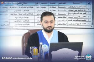 والمقدمة من الطالب خالد محمد خضر عباس، وذلك يوم الأحد الموافق 23 / 11 / 2025، بحضور السيد المعاون الإداري الأستاذ المساعد الدكتور عمر عادل شريف، وعدد من تدريسي الكلية وطلبة الدراسات العليا.