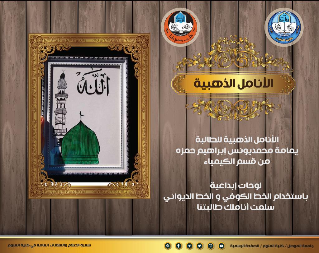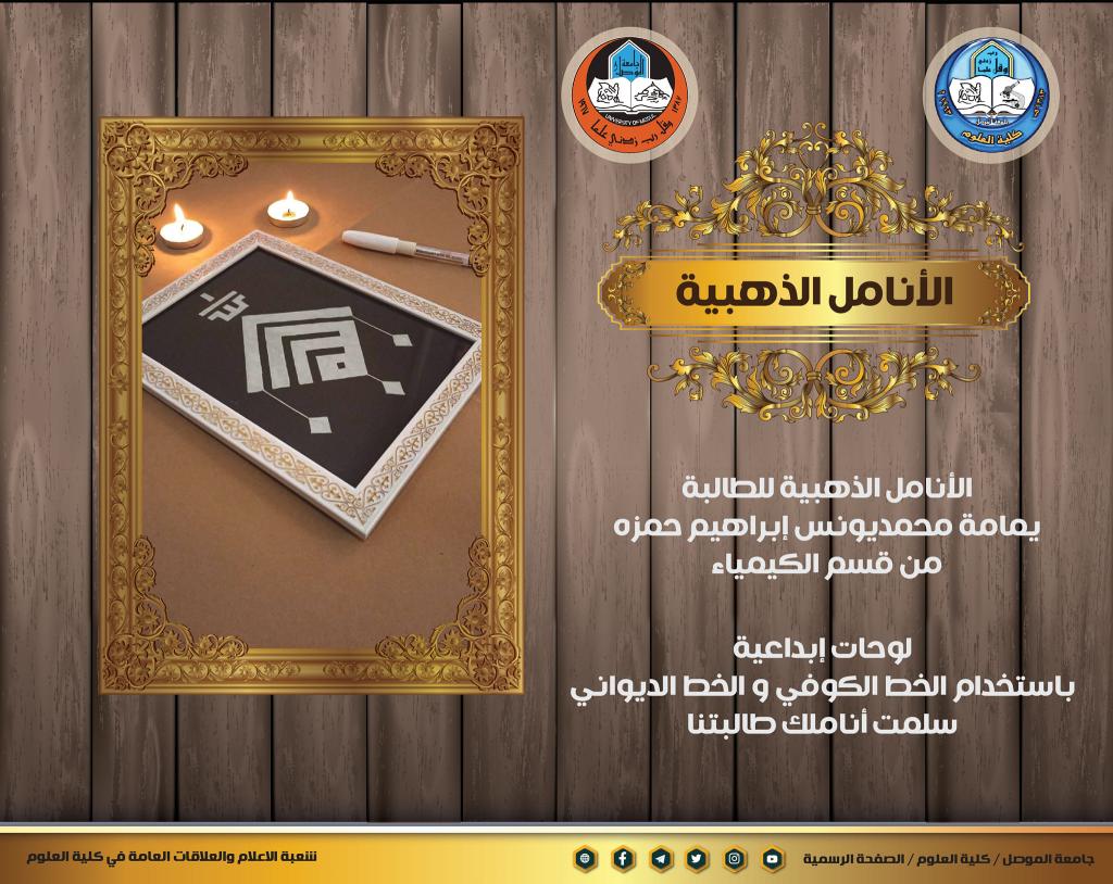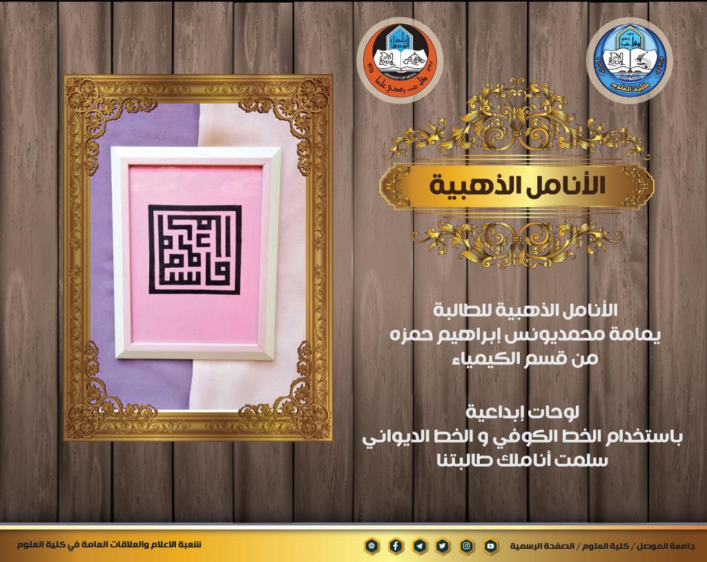 الأنامل الذهبية / الطالبة ” يمامة محمد يونس ابراهيم حمزة “