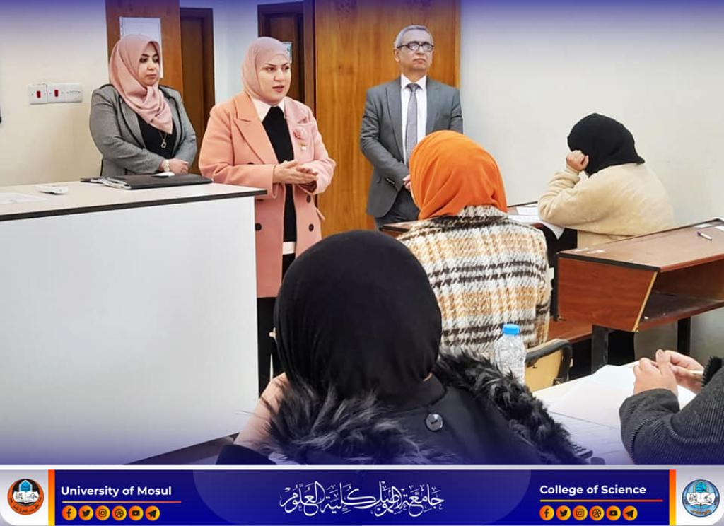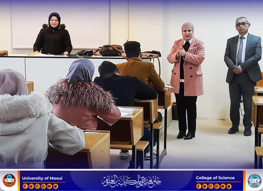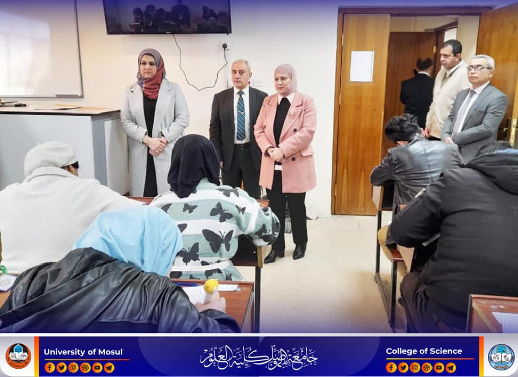 السيدة عميد كلية العلوم الأستاذ الدكتورة هيام عادل إبراهيم و معاونيها للشؤون العلمية و الادارية يتفقدون سير الامتحانات النهائية العملية لطلبة المرحلة الأولى للعام الدراسي 2022-2023 في قسمي الكيمياء و علوم الحياة.تمنياتنا لطلبتنا بالتوفيق