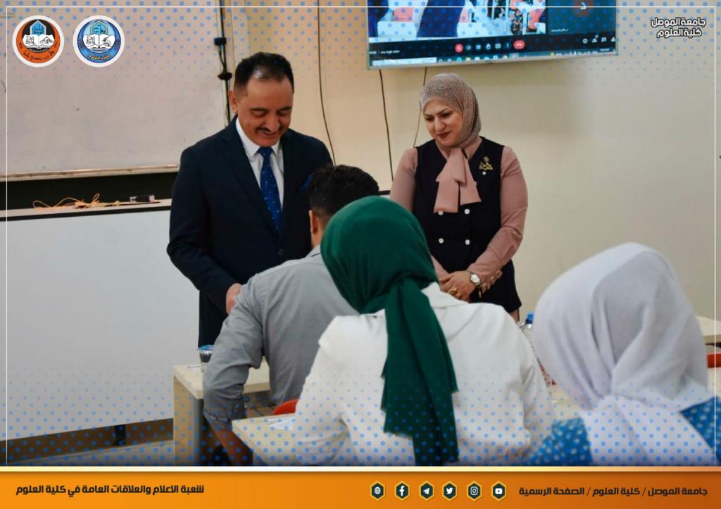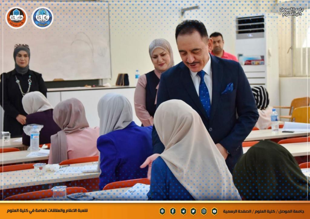 السيد رئيس جامعة الموصل الأستاذ الدكتور قصي كمال الدين الأحمدي برفقة السيدة عميد كلية العلوم الأستاذ الدكتورة هيام عادل ابراهيم يتفقدان سير الامتحانات النهائية النظرية الحضورية في الكلية ، حيث اطلع السيد رئيس الجامعة على الأجواء الامتحانية في الكلية واستمع للطلبة وانطباعهم عن الامتحانات موصياً إيّاهم بضرورة المثابرة والتفوق في حياتهم الدراسية وتحقيق النجاح في هذه الامتحانات التي تعد خطوة مهمة في تقدم مسيرتهم العلمية.تمنياتنا لطلبتنا الأبطال بالتوفيق الدائمشعبة الإعلام والعلاقات العامةالإثنين 27 حزيران 2022