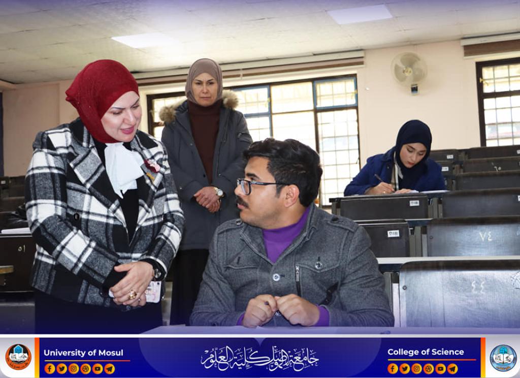 طلبة المرحلة الأولى في كليتنا يباشرون بأداء الامتحانات النهائية النظرية ، ومتابعة السيدة عميد كلية العلوم الأستاذ الدكتورة هيام عادل إبراهيم يرافقها السيد المعاون العلمي لسير العملية الإمتحانية.تمنياتنا لطلبتنا بالتوفيقشعبة الإعلام والعلاقات العامةالأحد 19 شباط 2023