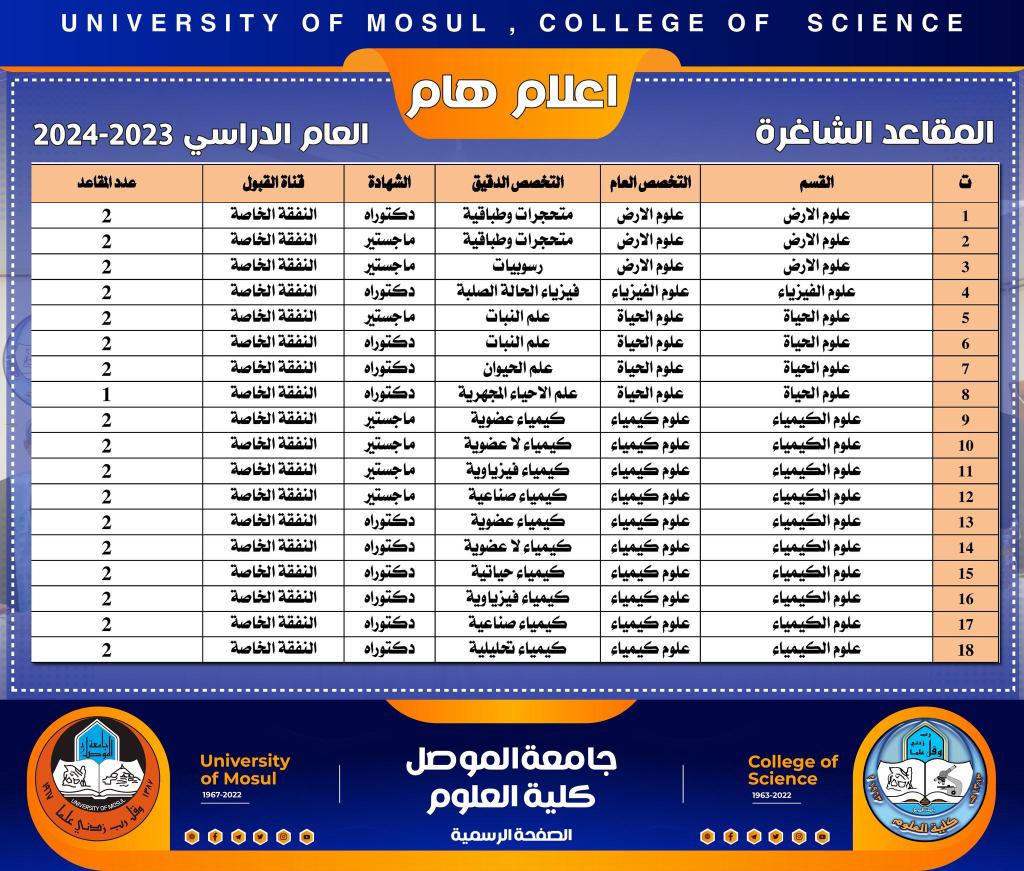 التقديم على المقاعد الشاغرة في الدراسات العليا