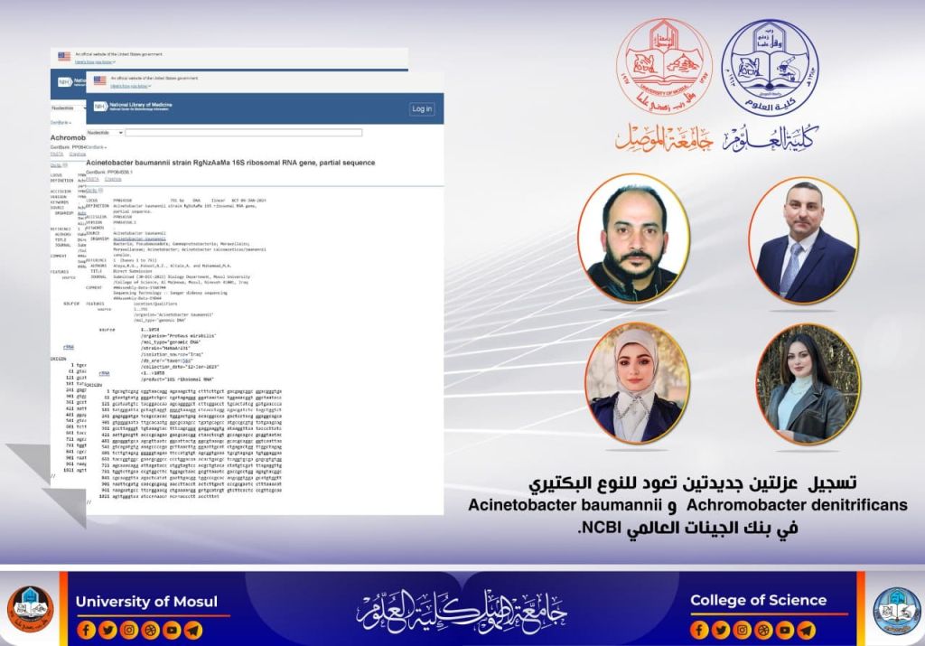 تسجيل  سلالتين بكتيرية  من بكتريا :   Achromobacter denitrificans  و Acinetobacter baumannii  في بنك الجينات العالمي  : NCBI
